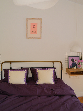 Комплект постельного белья из стираного перкаля сливового цвета из коллекции Essential, 150х200 см