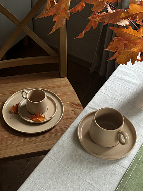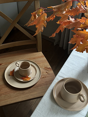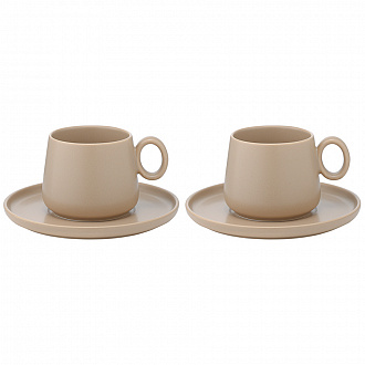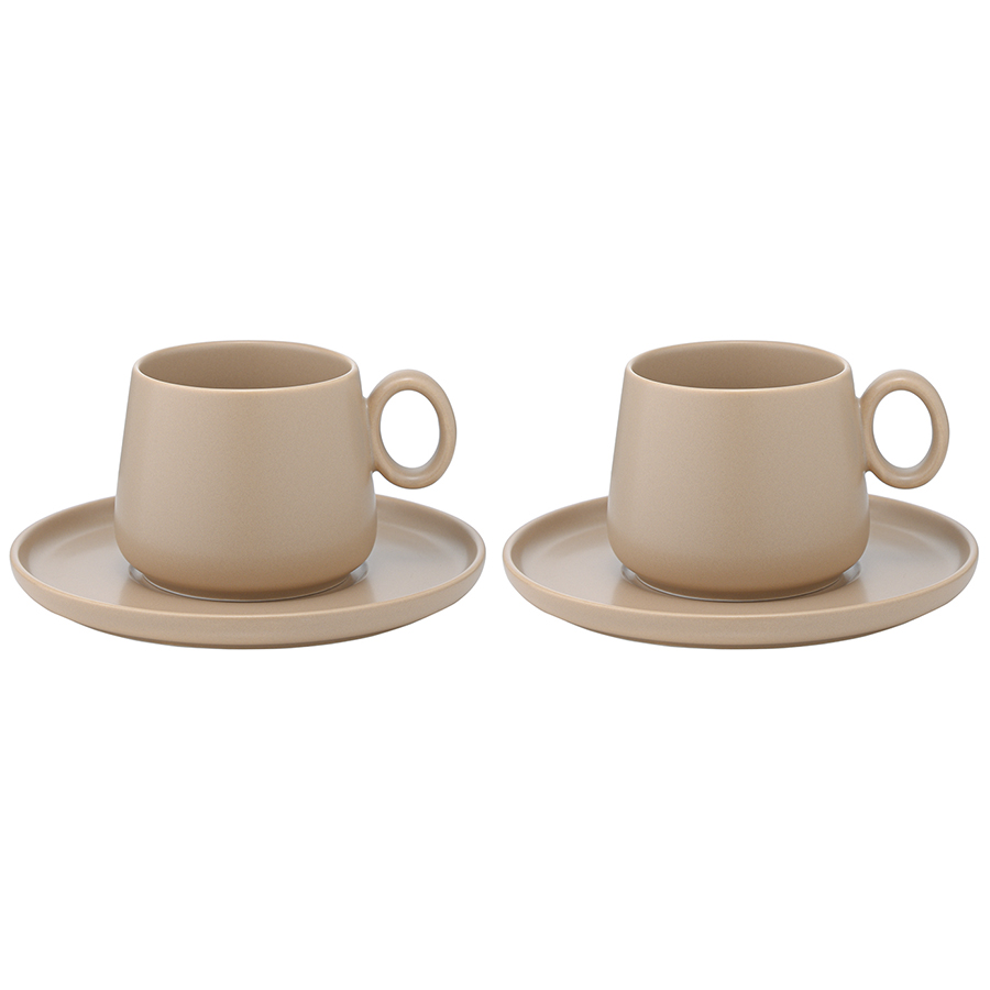 Набор из двух чашек с блюдцами бежевого цвета из коллекции Essential, 120 мл