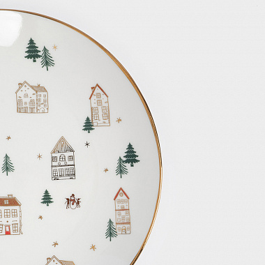 Тарелка закусочная Домики и ели, Townlet, Сказочный город, Ø19 см, бело-золотистая