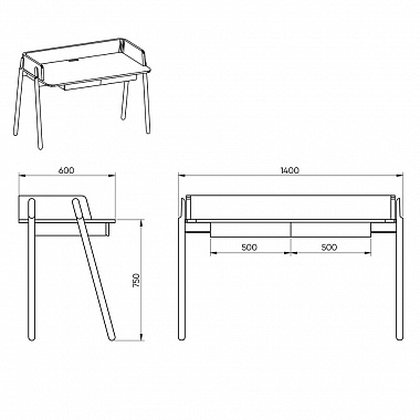 Стол письменный Basic, 140х60 см, натуральный дуб, бежевый