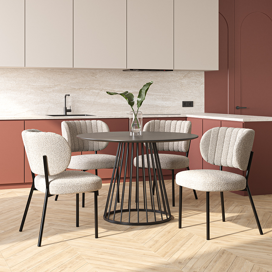 Обеденная группа: стол Tyra, Ø110 см, черный и кресло Lind, бежевое, 4 шт.