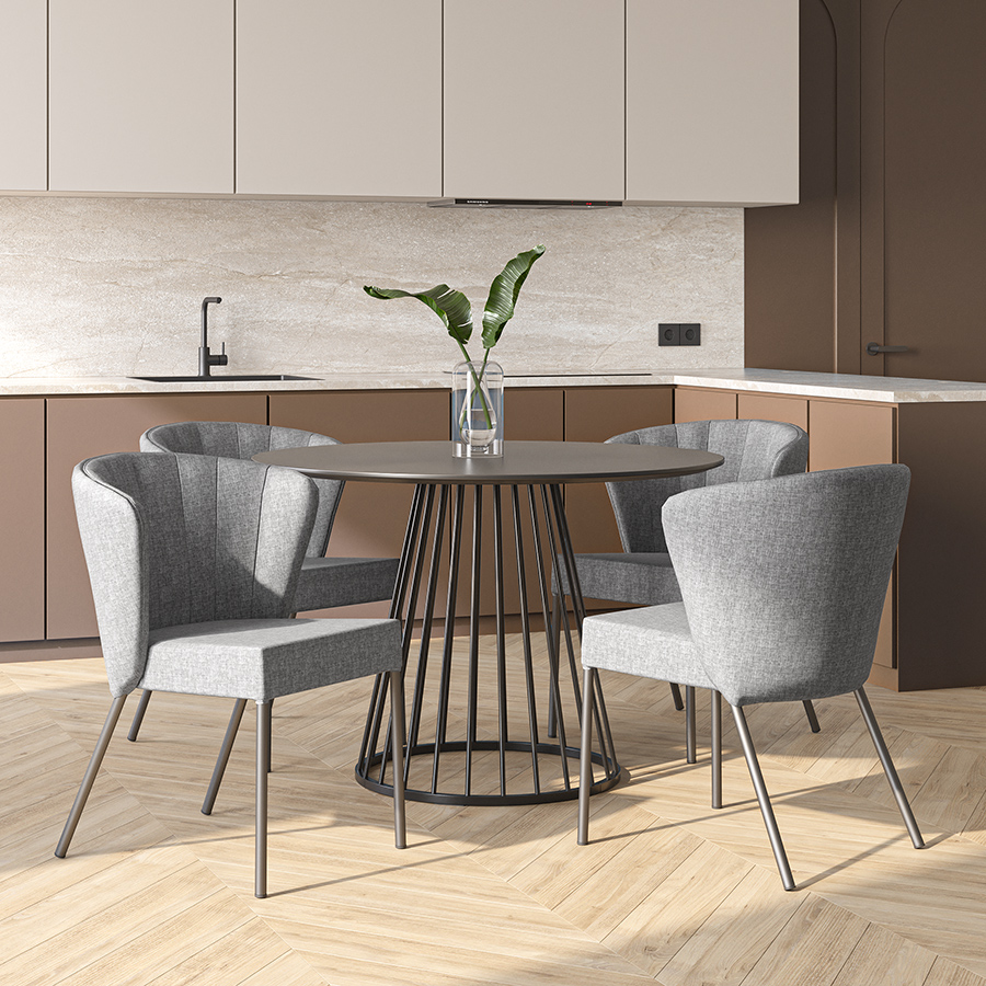 Обеденная группа: стол Tyra, Ø110 см, черный и стул Kristin, серый, 4 шт.