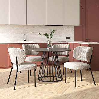 Обеденная группа: стол Tyra, Ø110 см, черный и стул Robbi, серо-бежевый, 4 шт.