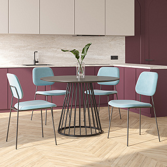Обеденная группа: стол Tyra, Ø110 см, черный и стул Tilla, темно-бирюзовый, 4 шт.
