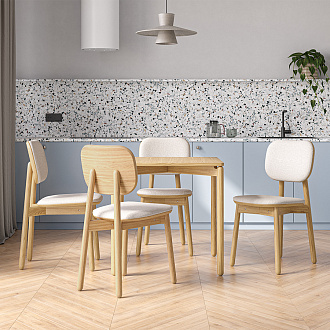 Обеденная группа Saga: стол 75х75 см, ясень и стулья c обивкой бежевые, 4 шт.