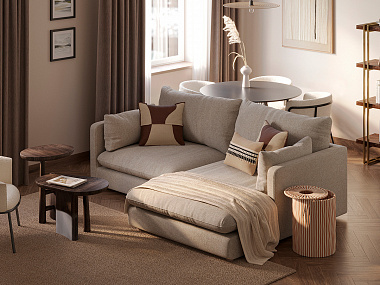 Диван Mono с оттоманкой, 210x175х85 см, песочный