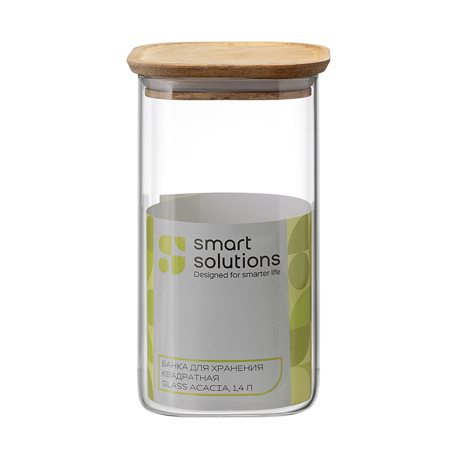 Банка для хранения квадратная Glass Acacia, 1,4 л