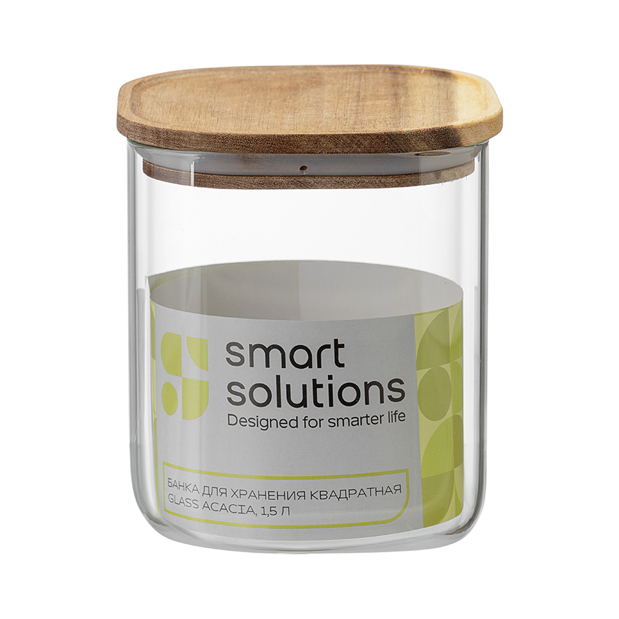 Банка для хранения квадратная Glass Acacia, 1,5 л