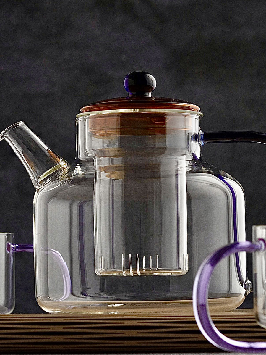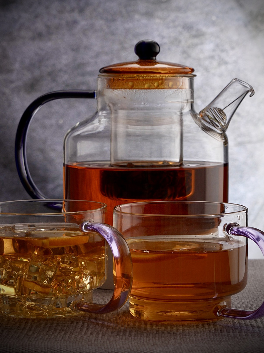 Чайник очень эстетичный, прозрачное стекло позволяет наблюдать, как раскручиваются листья. Янтарная крышка и синяя ручка добавляют сочных акцентов. Ручка удобно ложится в ладонь, не нагревается. Стекло толстое, но при первом использовании всё равно боялась резких перепадов температур, напрасно, выдержал и кипяток, и мытьё.