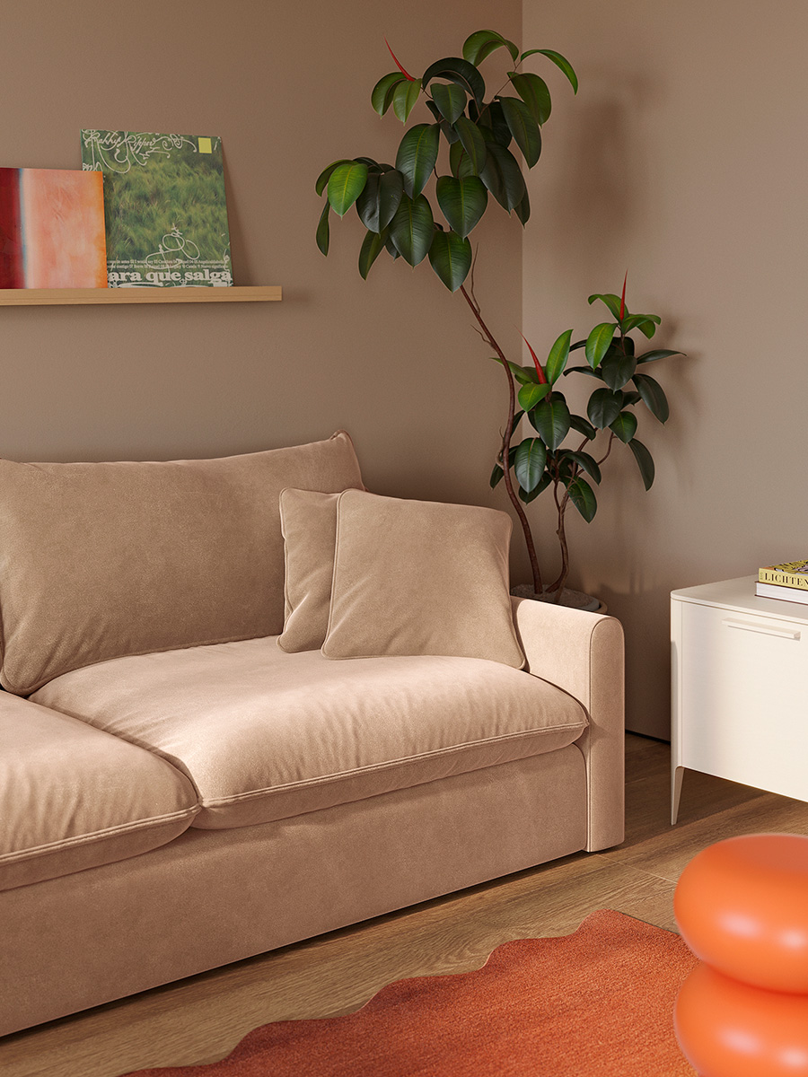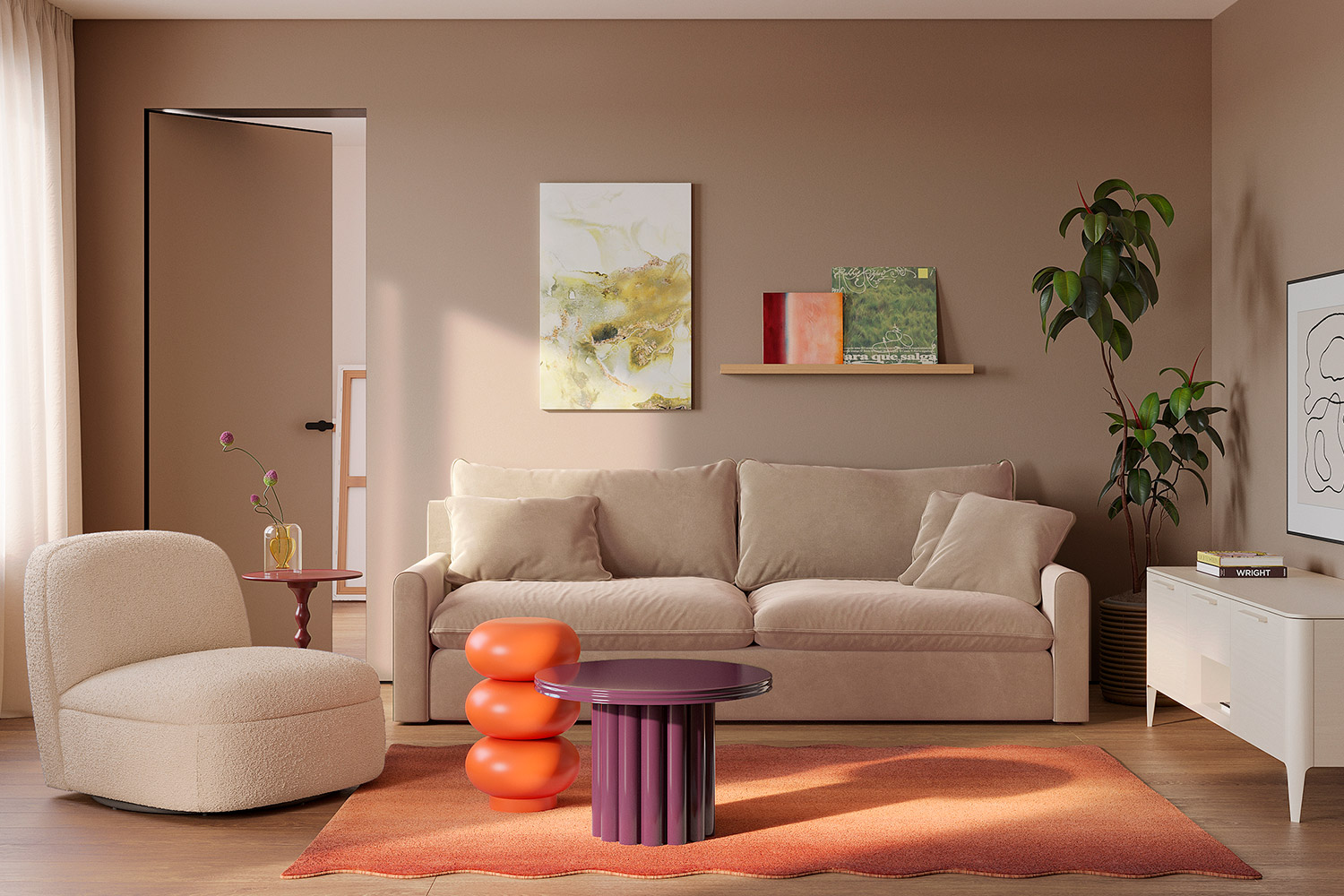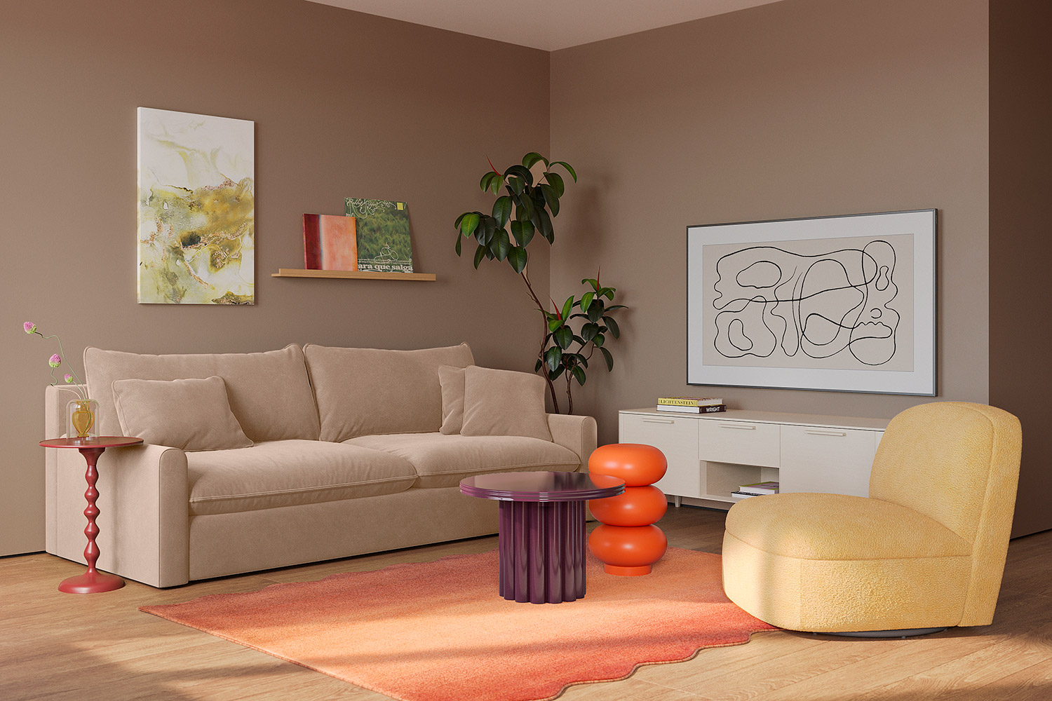 Диван легко становится частью как камерной гостиной, так и более просторного интерьера, поддерживая ощущение порядка и целостности пространства.