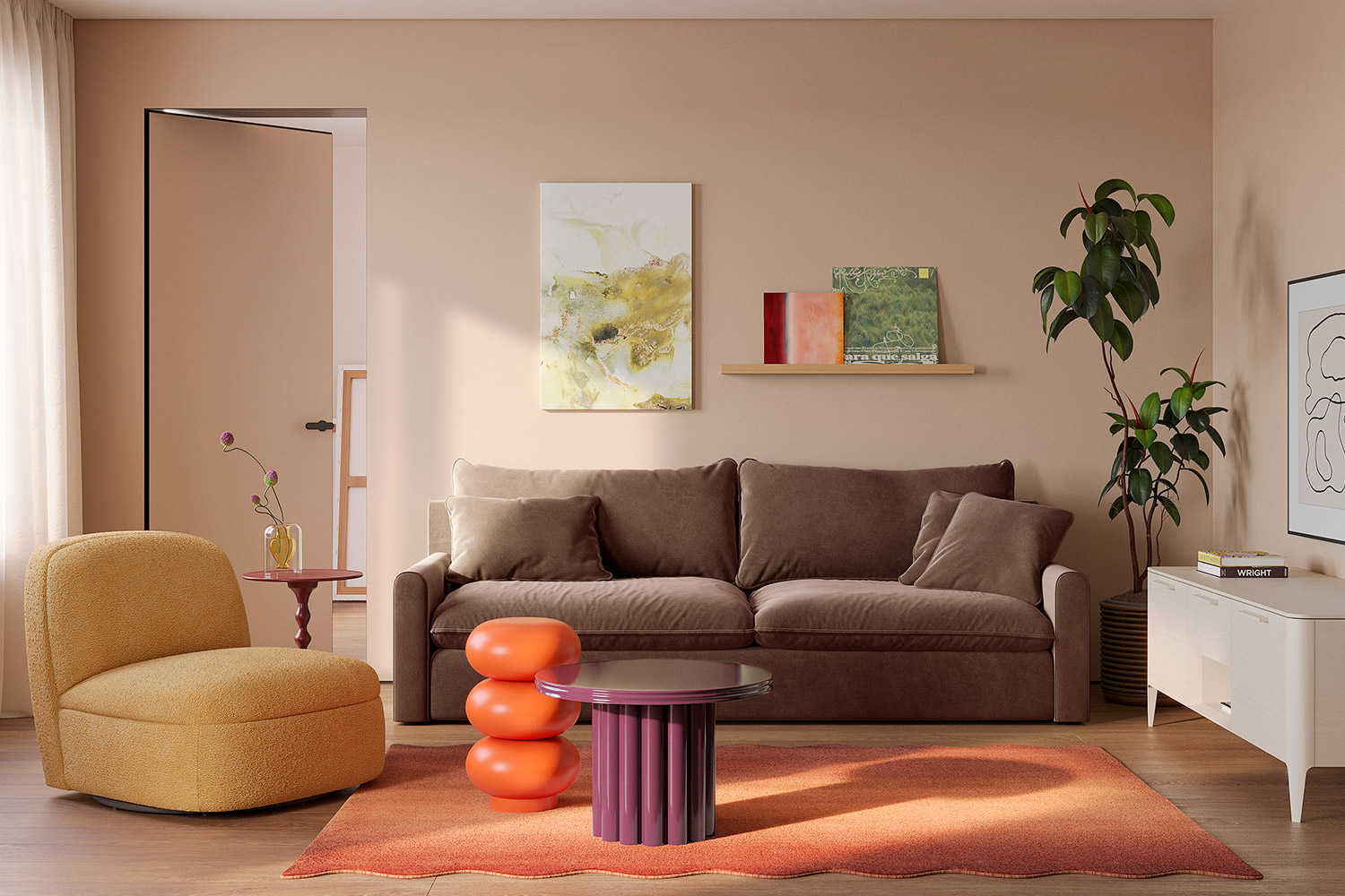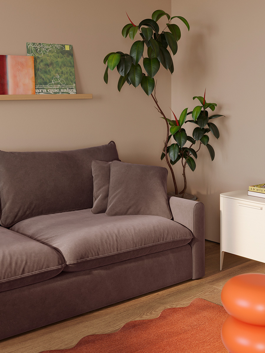 Диван легко становится частью как камерной гостиной, так и более просторного интерьера, поддерживая ощущение порядка и целостности пространства.