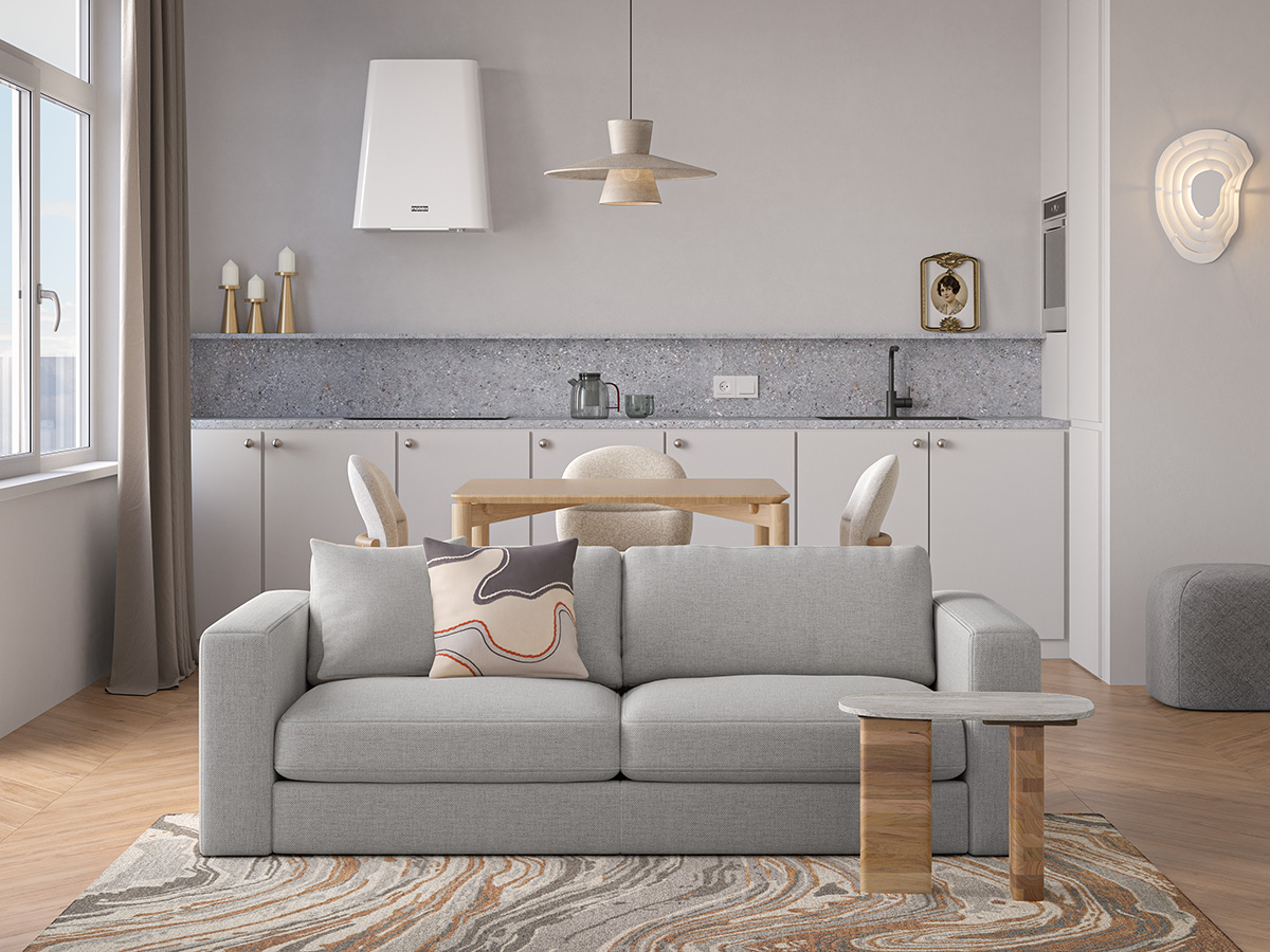 - Сбалансированные пропорции — диван выглядит основательно, но не утяжеляет интерьер.