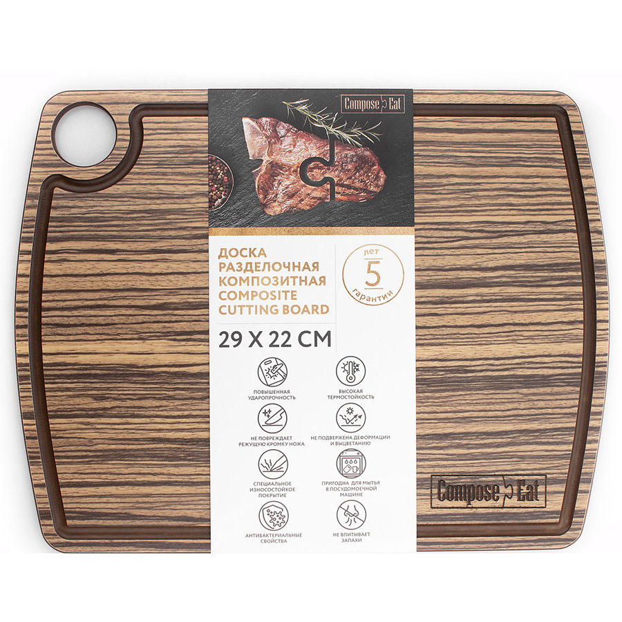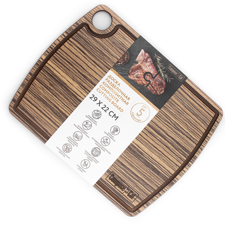 Доска разделочная c желобом, 29х22 см, зебрано натуральный