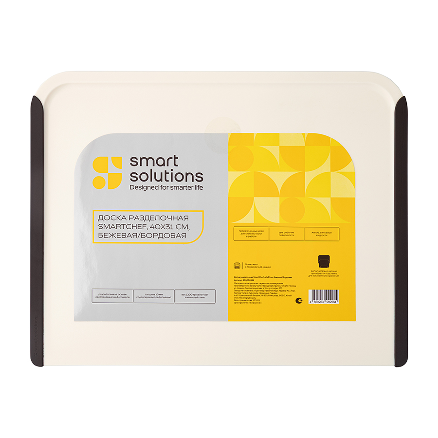 Доска разделочная SmartChef, 40х31 см, бежевая/бордовая