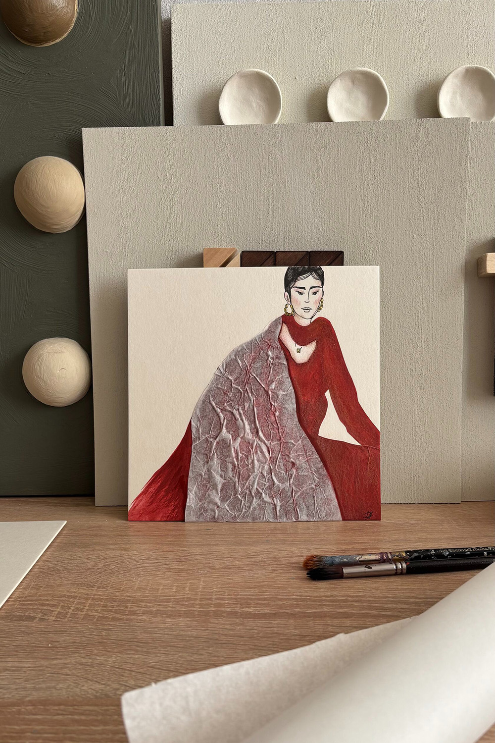 Материалы: бумага 100% хлопок, гуашь, линнер. Размер: 20х20 см. Цвет: белый/беж/красный.