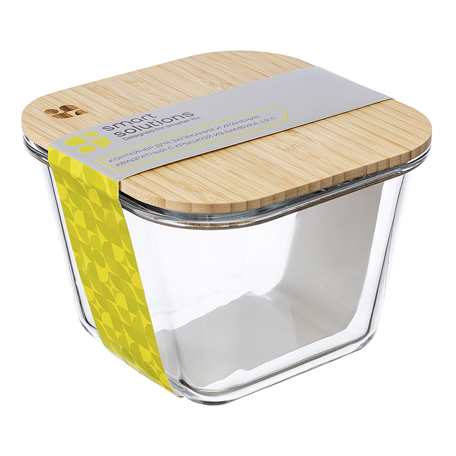 Контейнер для запекания и хранения квадратный Eco Store с крышкой из бамбука, 1,9 л