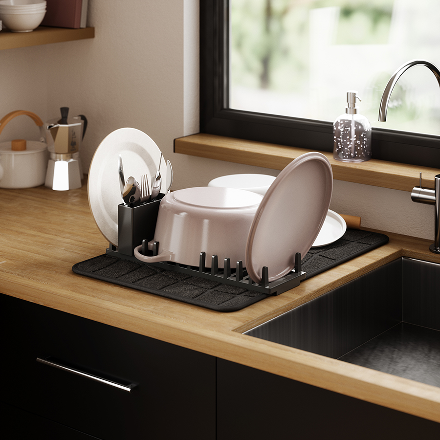 Коврик для сушки посуды Udry, 43х61 см, черный