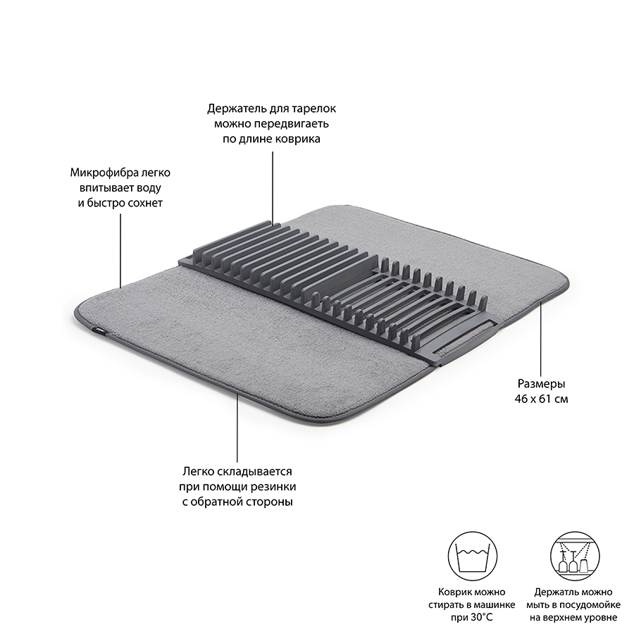 Коврик для сушки посуды Udry, 46х61 см, темно-серый