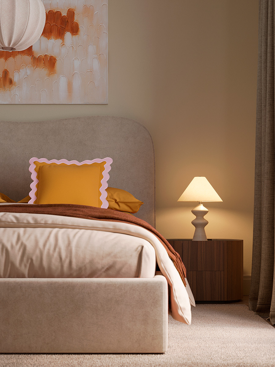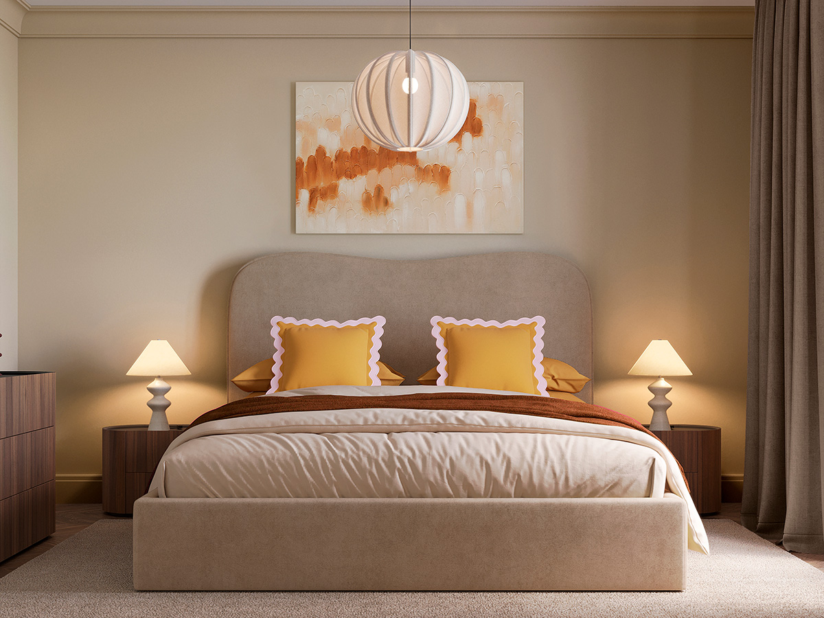 - Мягкое фигурное изголовье — комфортная опора для отдыха и выразительный визуальный акцент.