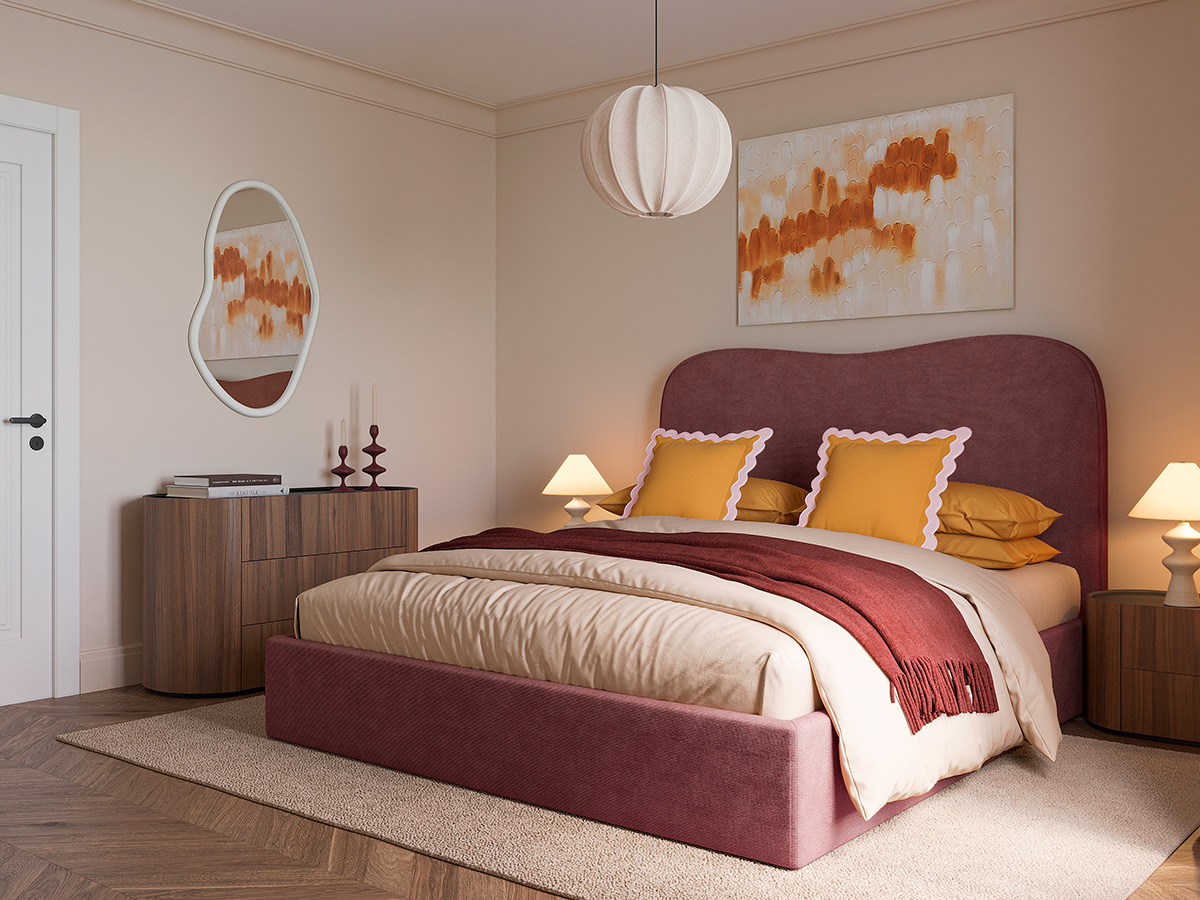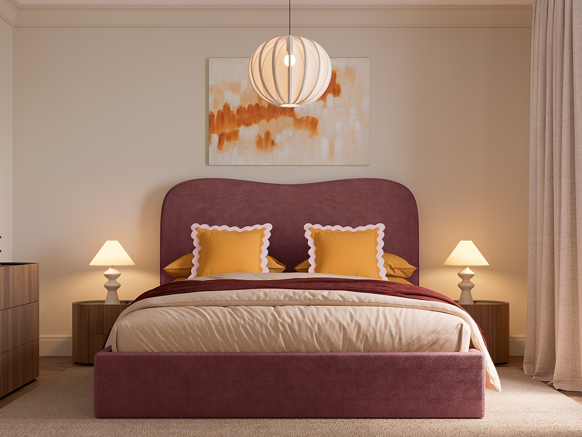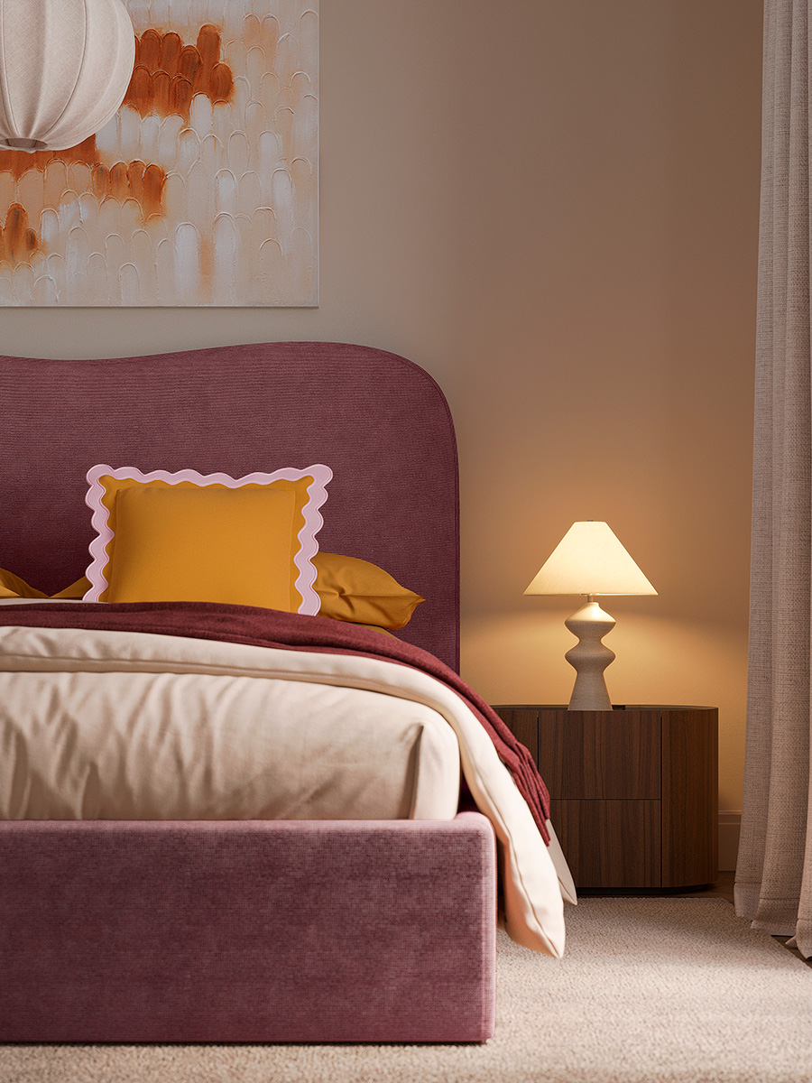 - Мягкое фигурное изголовье — комфортная опора для отдыха и выразительный визуальный акцент.