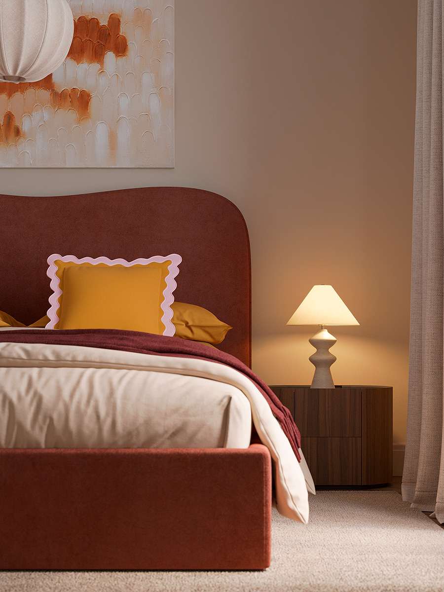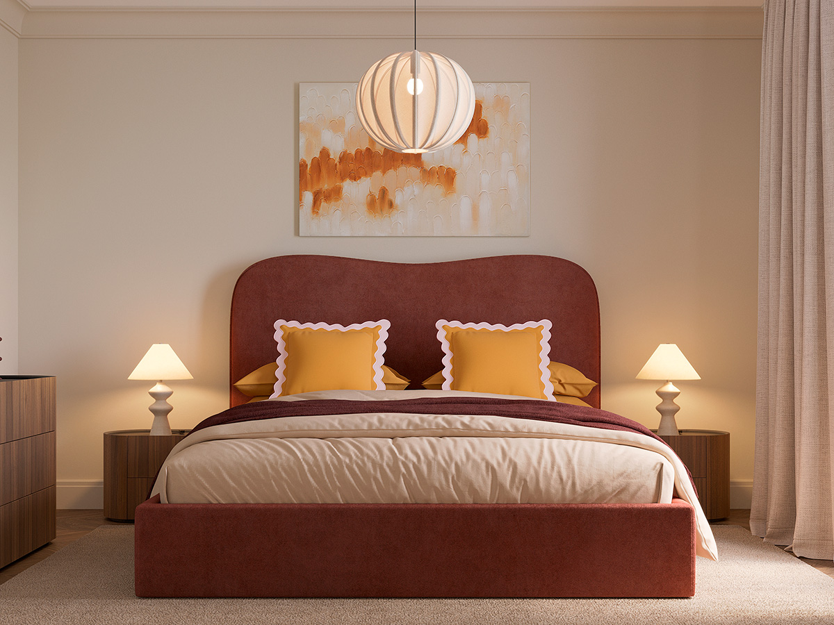 - Мягкое фигурное изголовье — комфортная опора для отдыха и выразительный визуальный акцент.