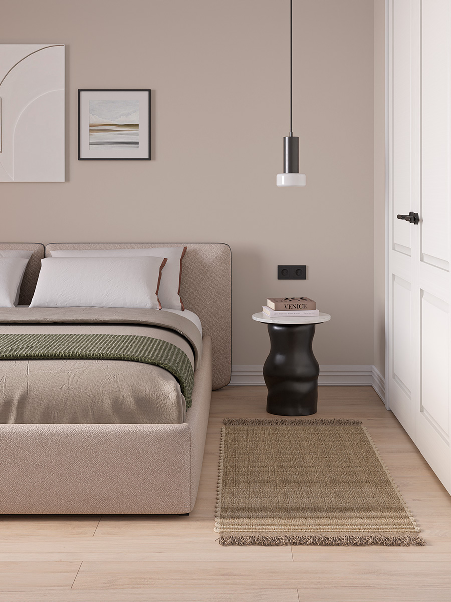 Drift легко адаптируется к современным интерьерам — от минимализма до мягкого контемпорари, сочетаясь с разными сценариями освещения, текстилем и прикроватной мебелью.