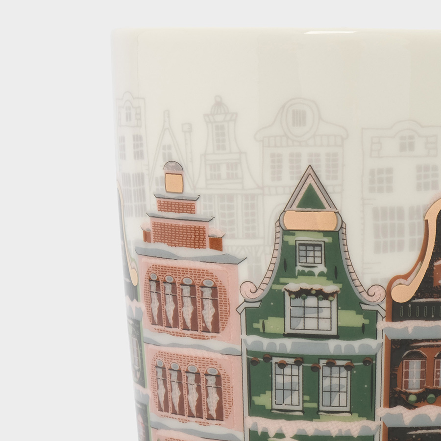 Кружка Дома, Town, Сказочный город, 500 мл, бело-золотистая
