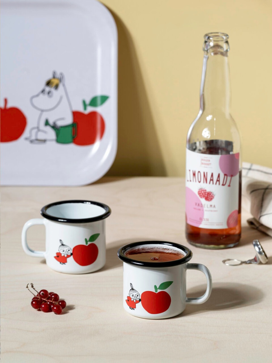 Кружка эмалированная Moomin Вкусные яблоки, 150 мл, белая/красная