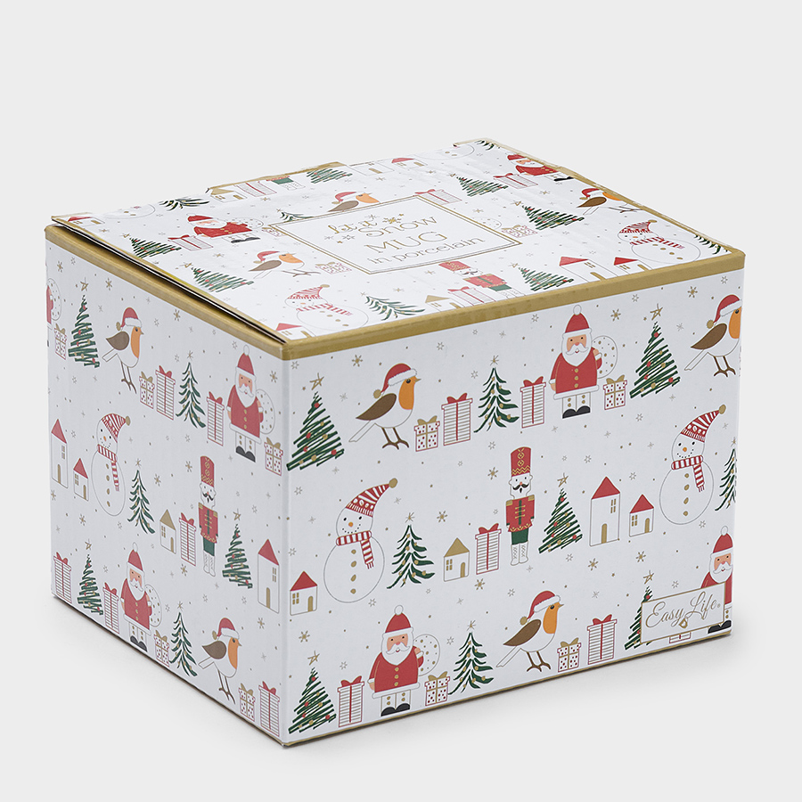 Кружка Новогодний снег, Дед Мороз, 400 мл, белая/золото