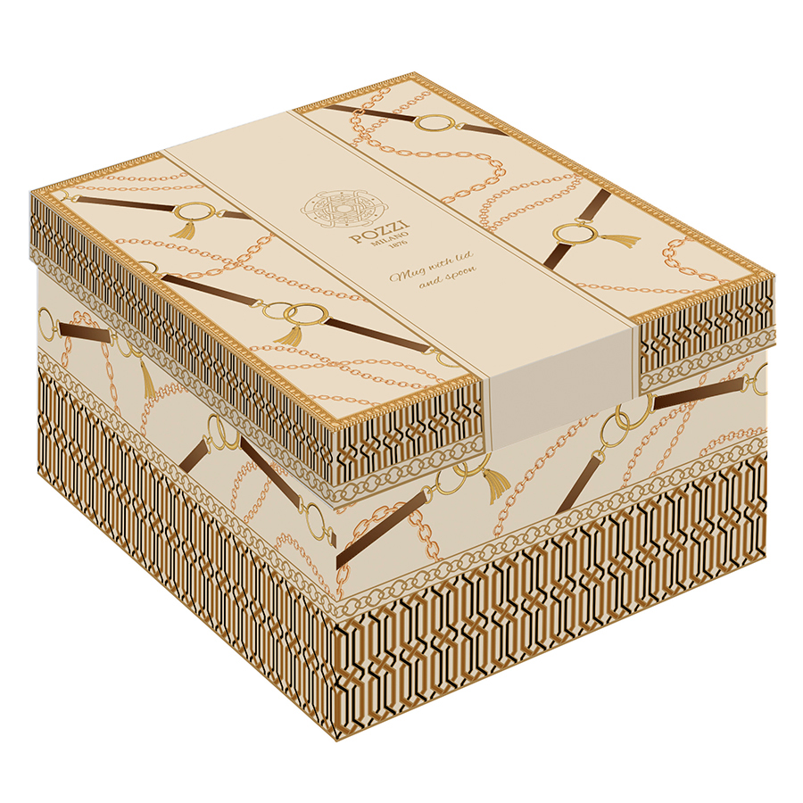 Кружка с крышкой и ложкой Luxury chain, 300 мл, бежевая