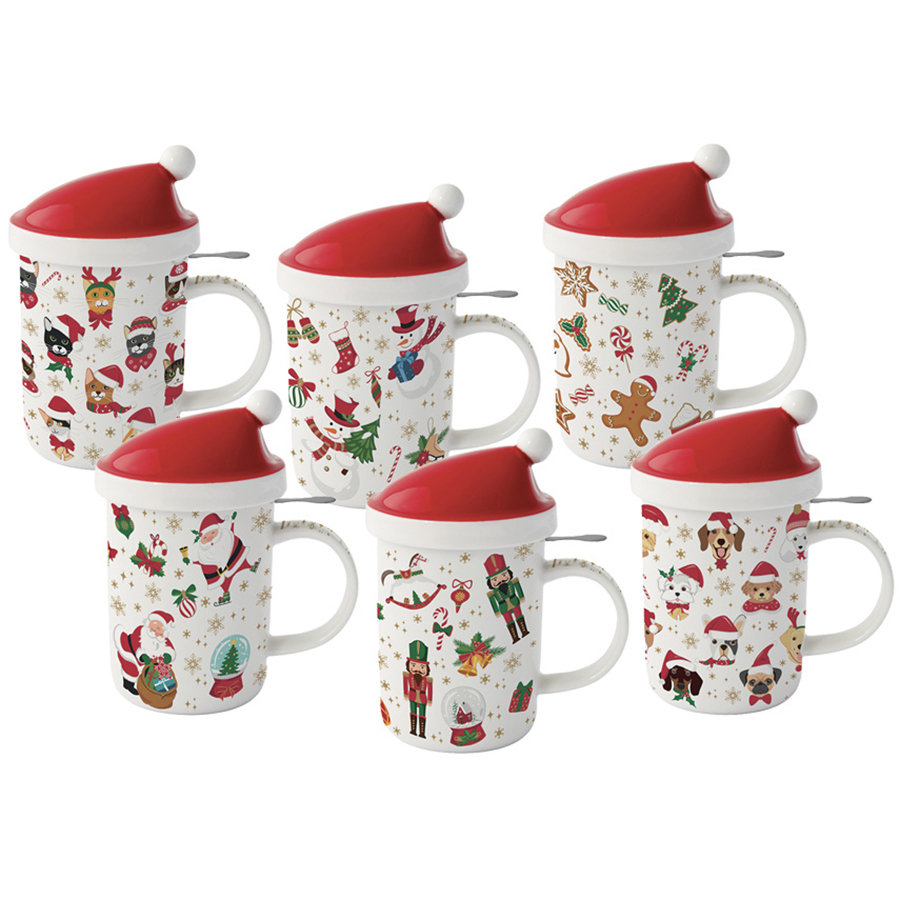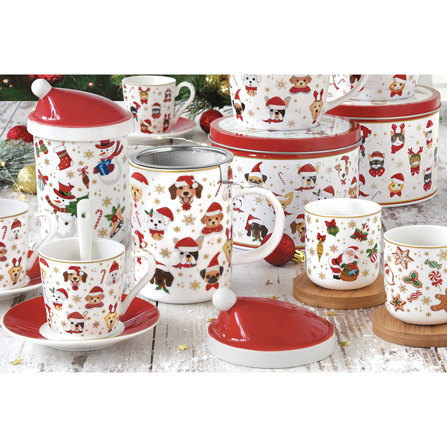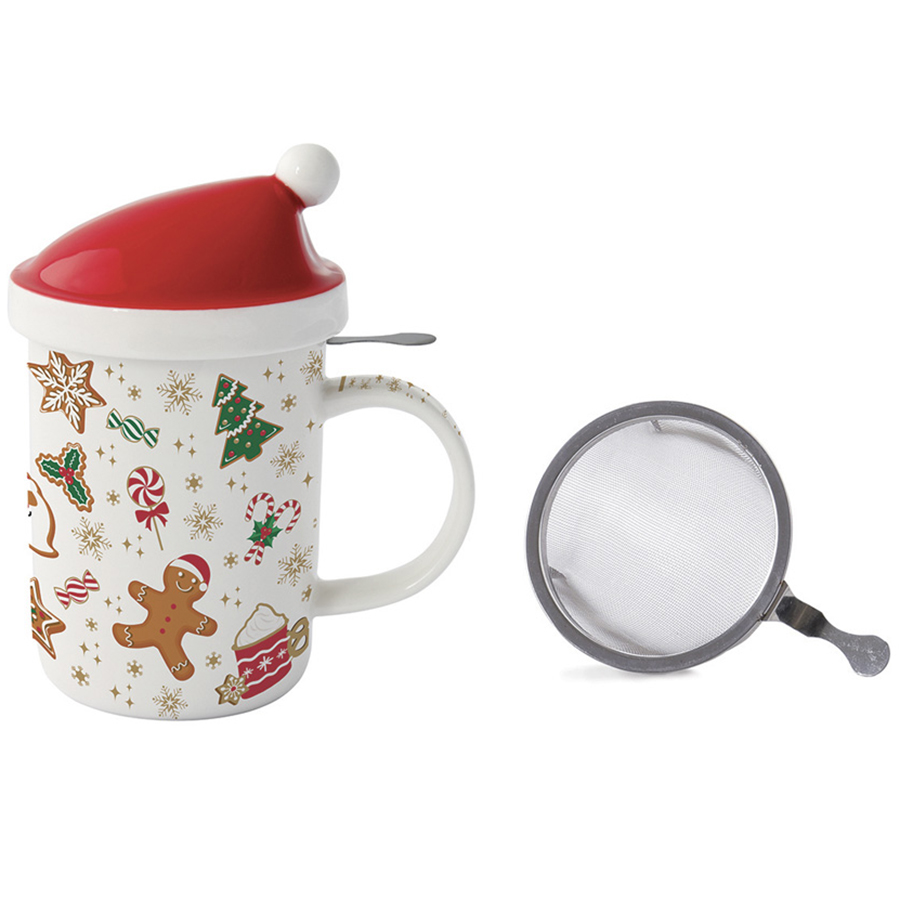 Кружка с крышкой и металлическим ситечком Рождественские подарки 3, 370 мл