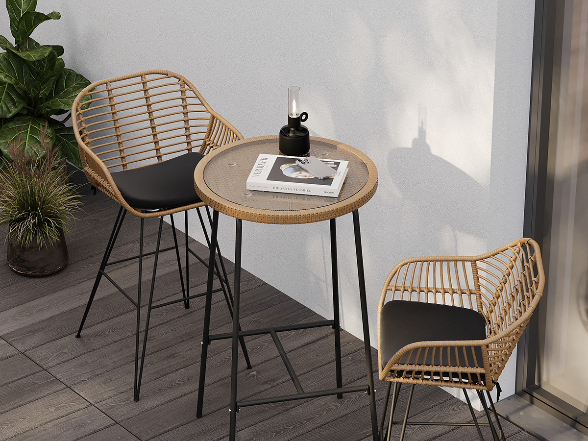 - Столик Vetle – стильный акцент, который украсит собой любое пространство. Сочетание элементов из стали, искусственного ротанга и стекла обеспечивает мебели интересный вид и делает ее практичной и долговечной.