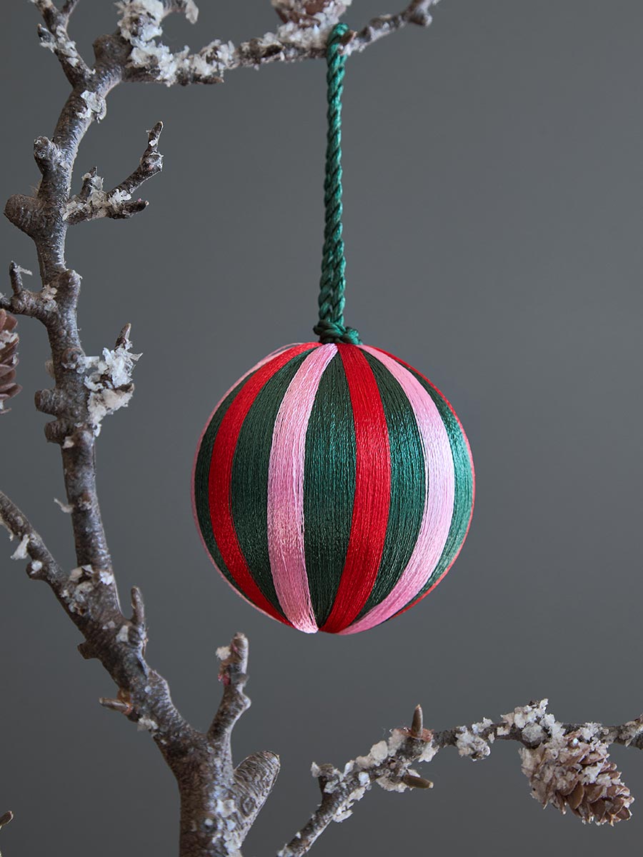 - Пластиковый каркас шаров декорирован разноцветными полиэстеровыми нитями, которые не теряют насыщенности цвета со временем.