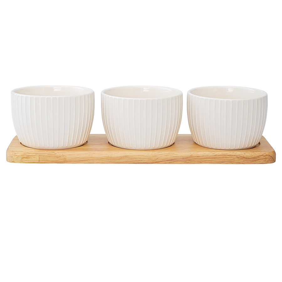 Набор из 3 чаш на деревянной подставке Soft Ripples, Dual Glazing, 200 мл