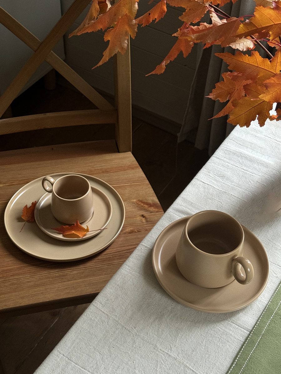 Набор из двух чайных пар бежевого цвета из коллекции Essential, 250 мл