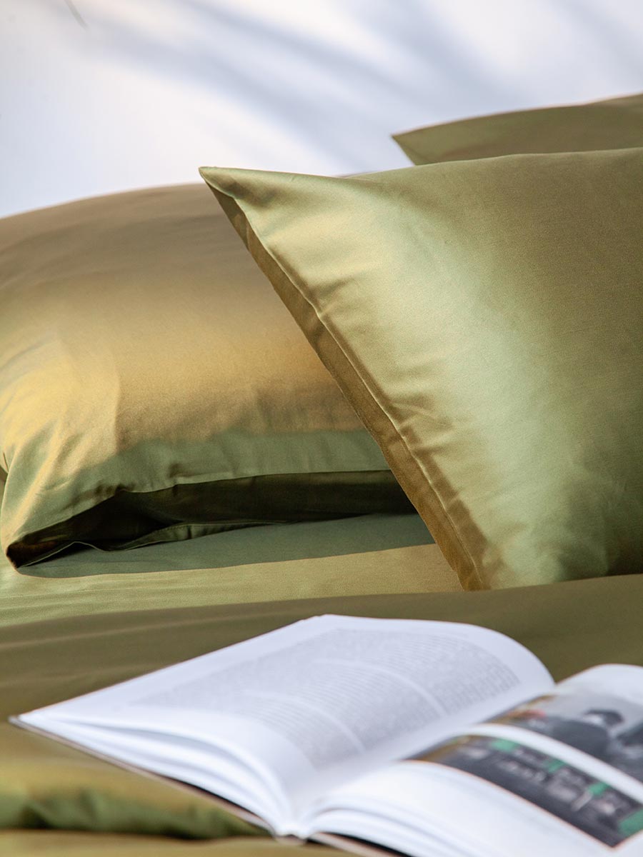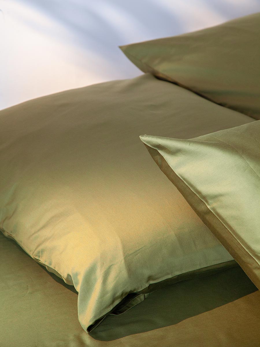 - Набор наволочек из премиального сатина оливкового цвета из коллекции Essential, 50х70 см