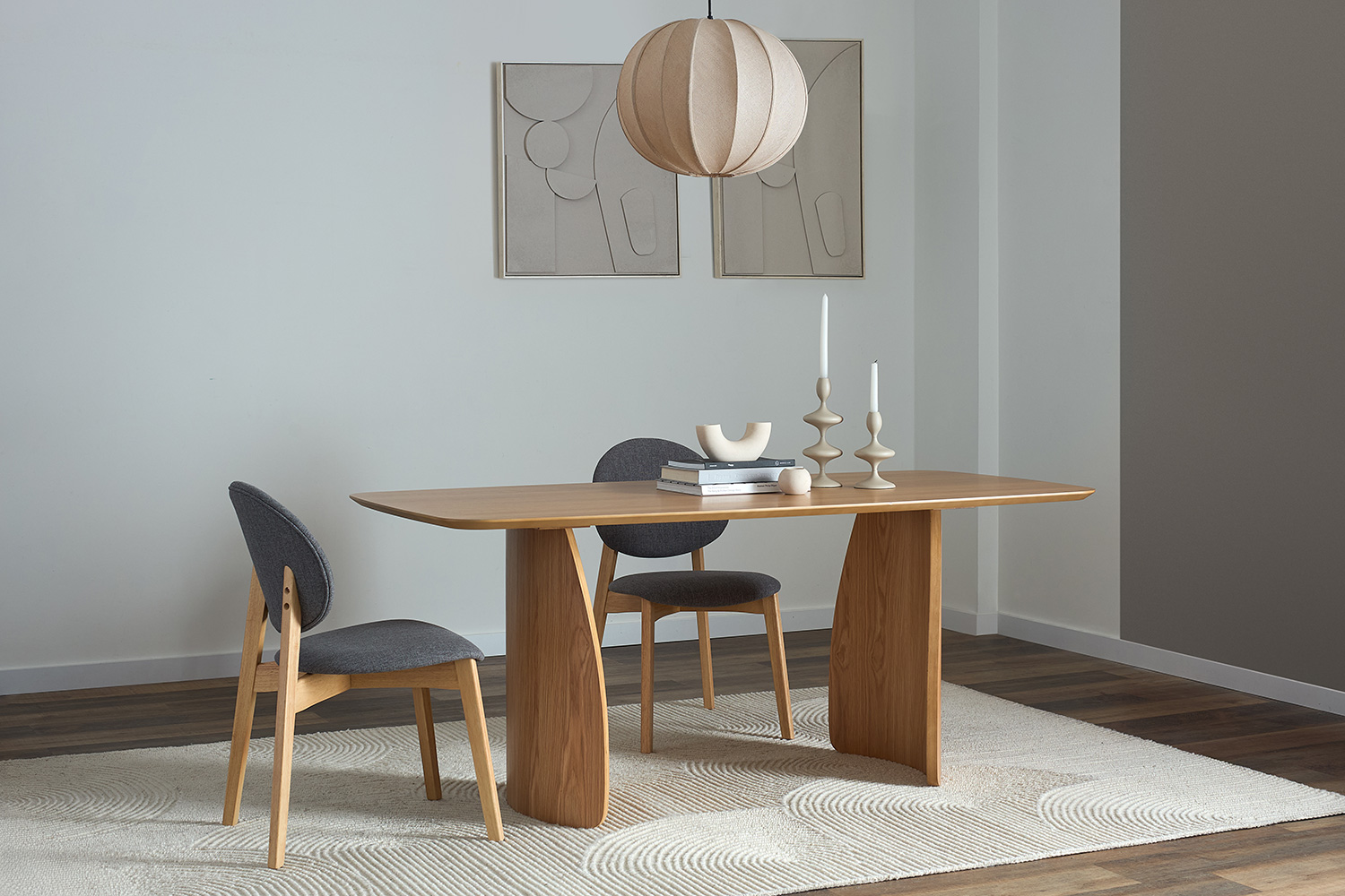- Необычные широкие ножки стола из гнутой древесины делают дизайн уникальным, а конструкцию – надежной и долговечной.