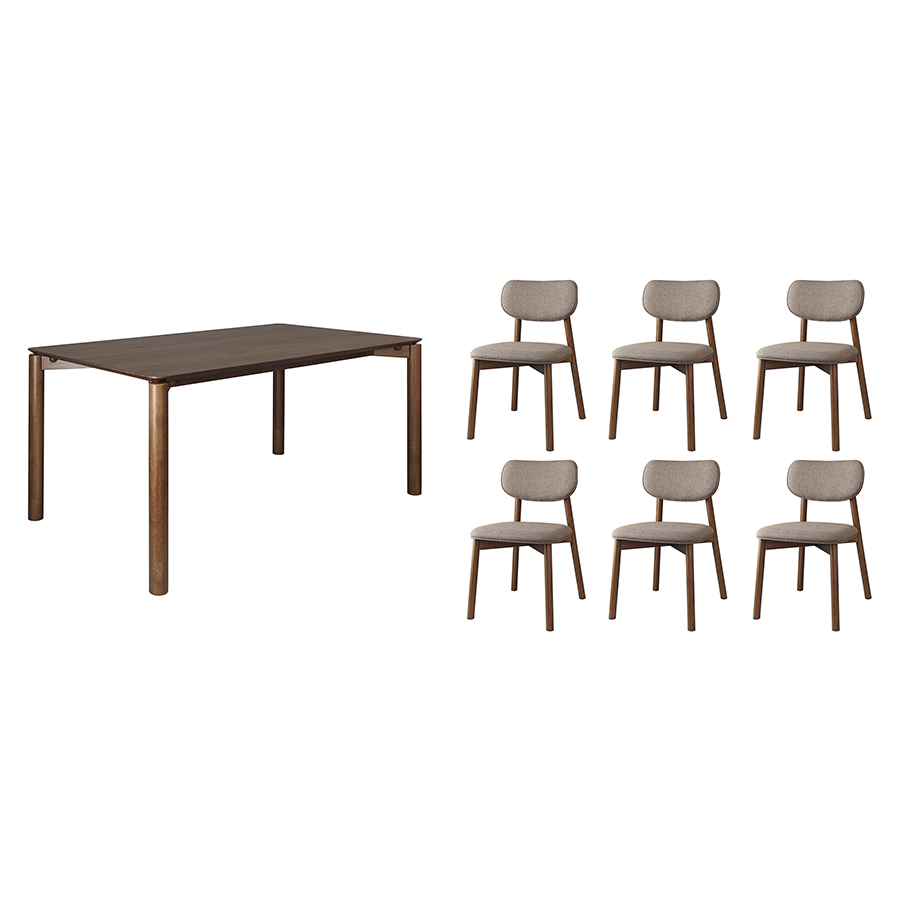 Обеденная группа Union: стол обеденный, 150х90 см, дуб и 6 стульев, рогожка, темно-коричневый/кофейный