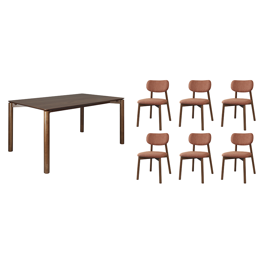 Обеденная группа Union: стол обеденный, 150х90 см, дуб и 6 стульев, рогожка, темно-коричневый/терракота