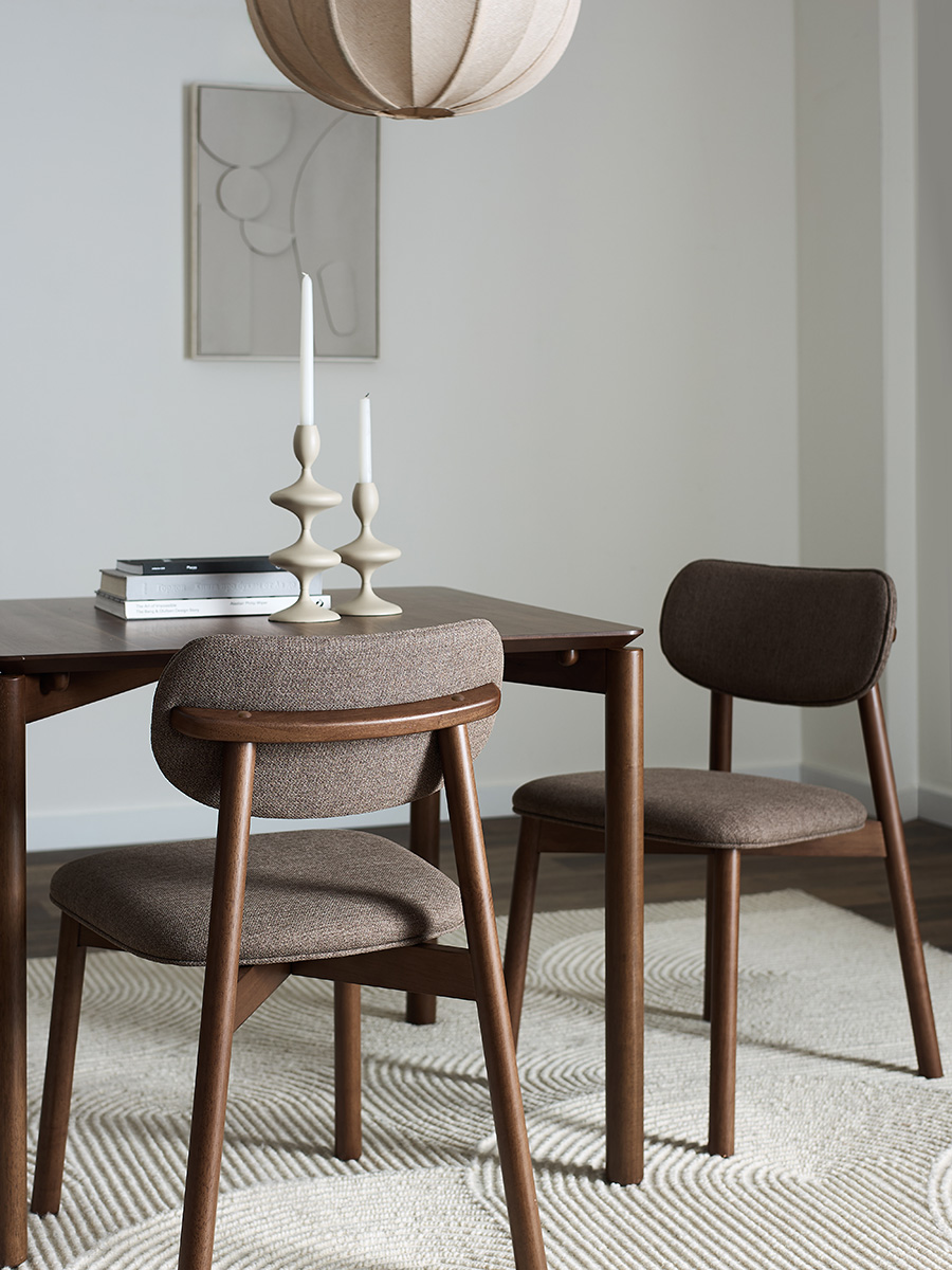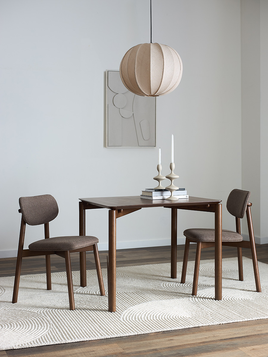 - Обеденная группа Union: стол обеденный 90х90 см, дуб и 4 стула, рогожка, темно-коричневый/кофейный