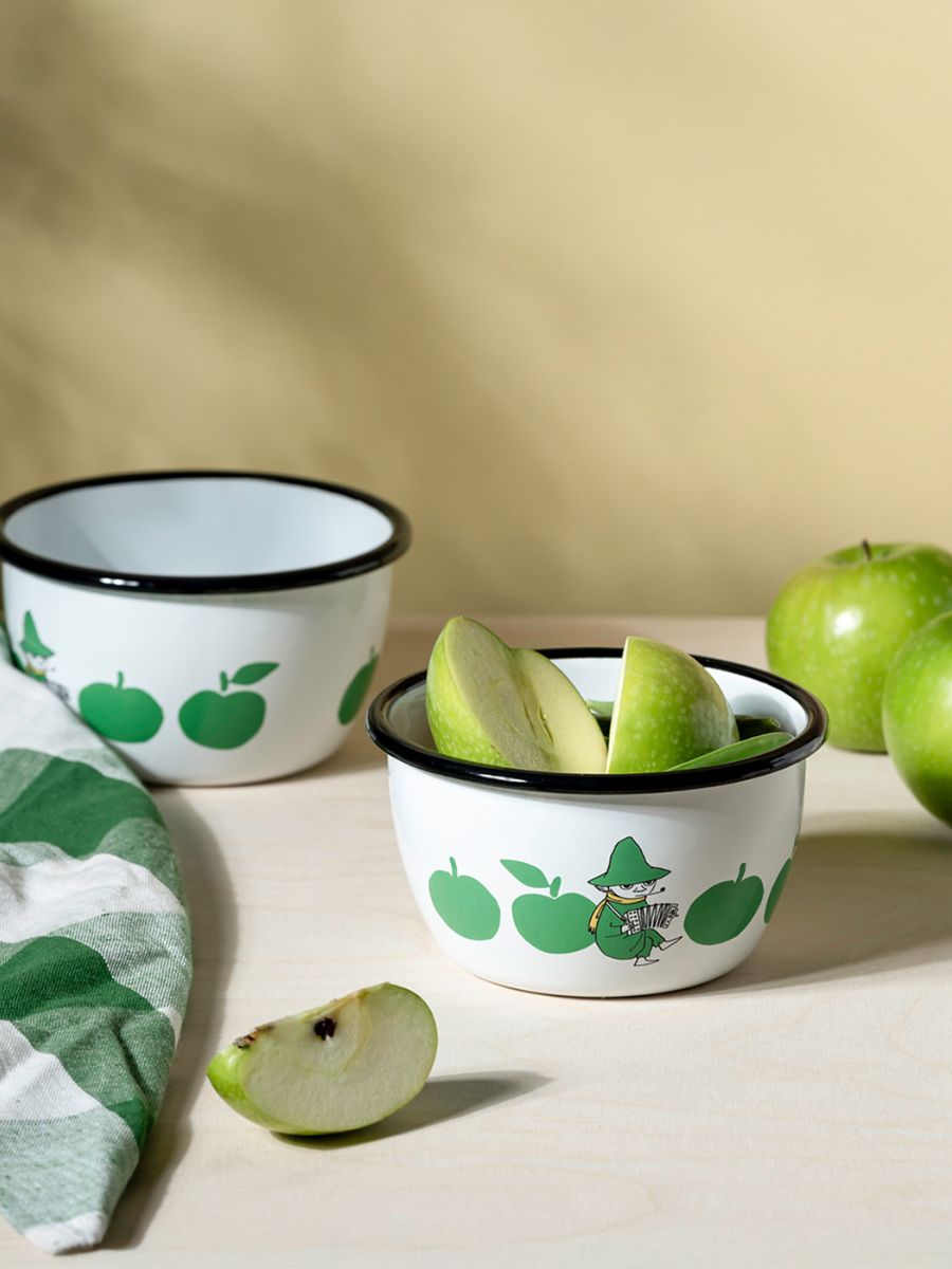 Пиала эмалированная Moomin Вкусные яблоки, 600 мл, белая/зеленая