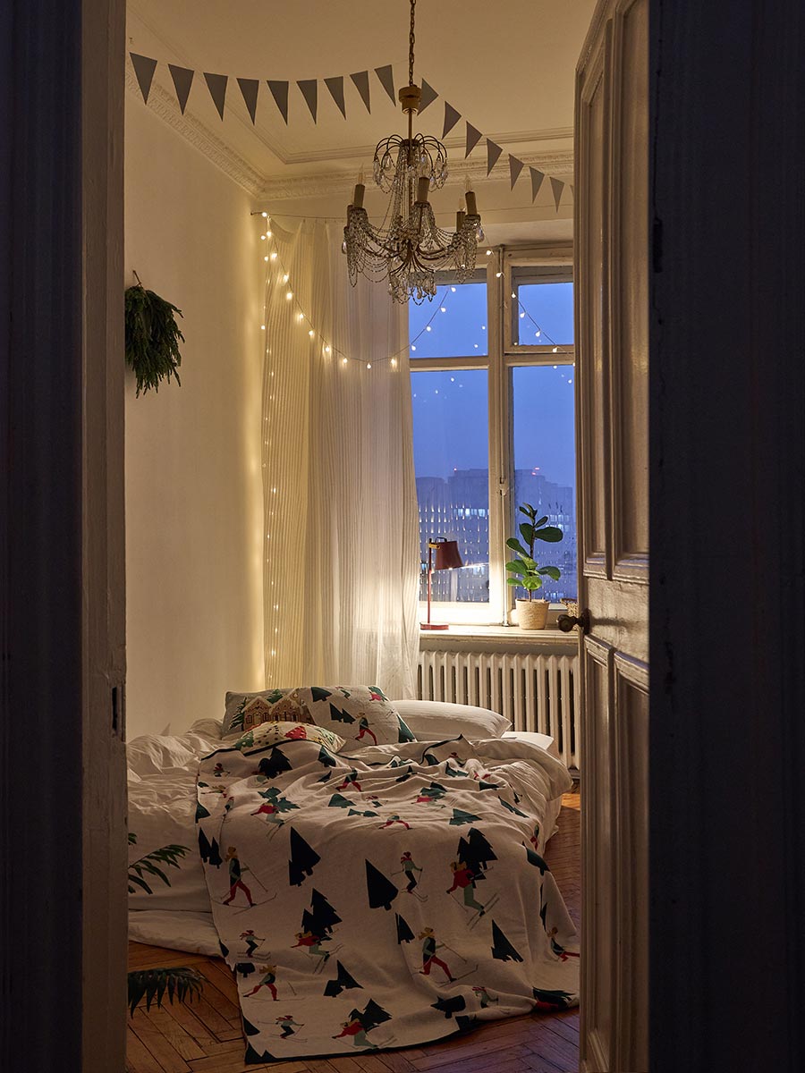 Плед из хлопка с новогодним рисунком Let's Ski из коллекции New Year Essential, 130x180 см
