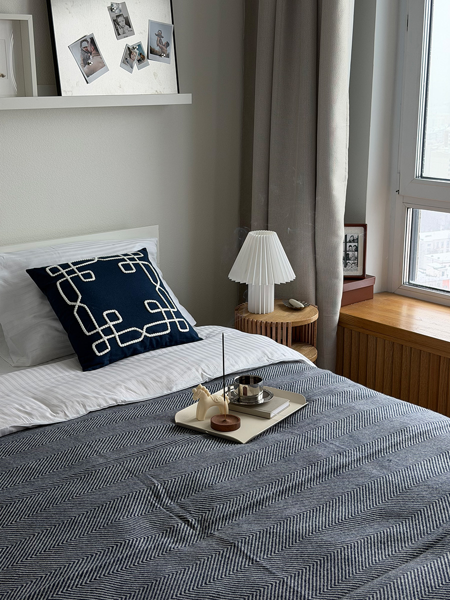 Плед из шерсти мериноса темно-синего цвета из коллекции Essential, 130х180 см