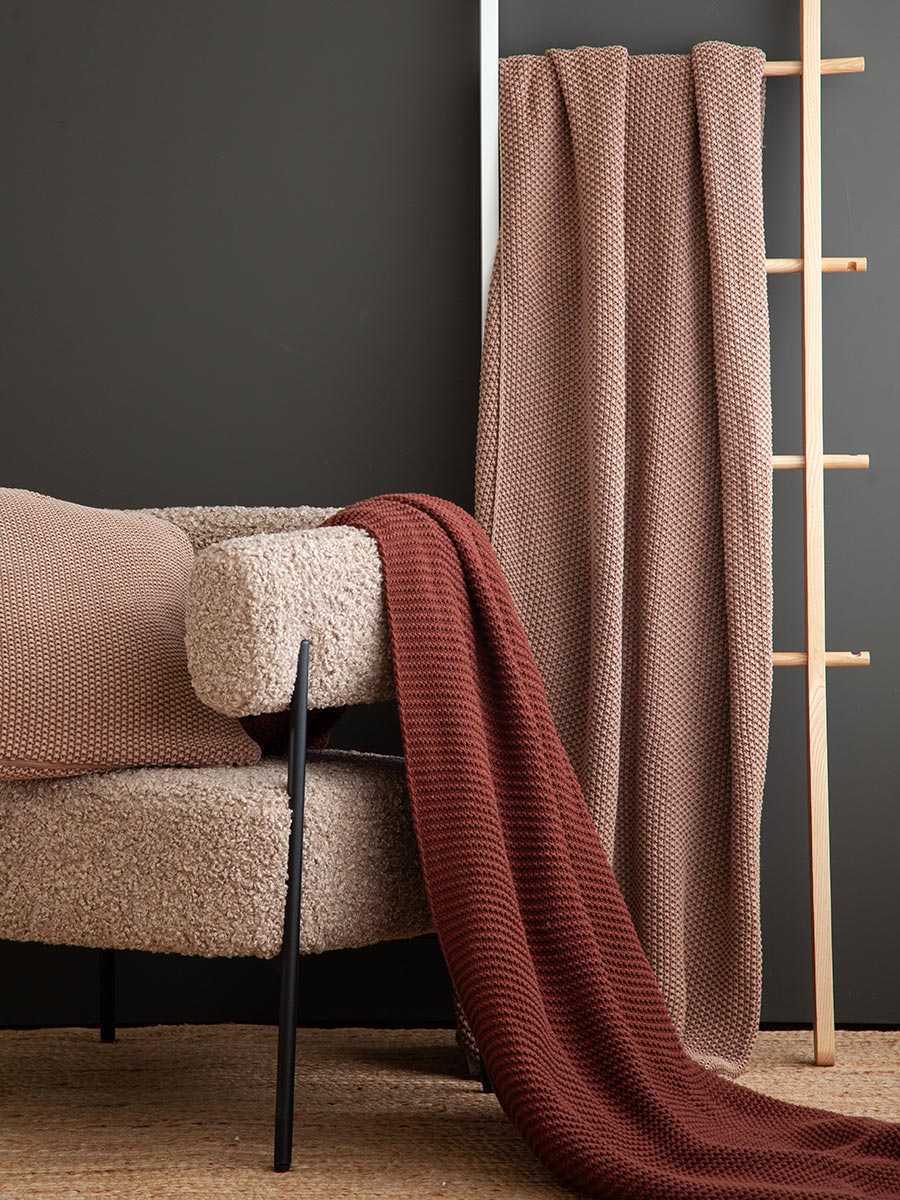 Плед из стираного хлопка цвета мокко из коллекции Essential, 130x180 см
