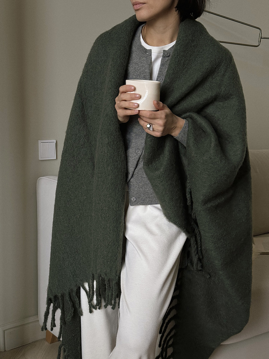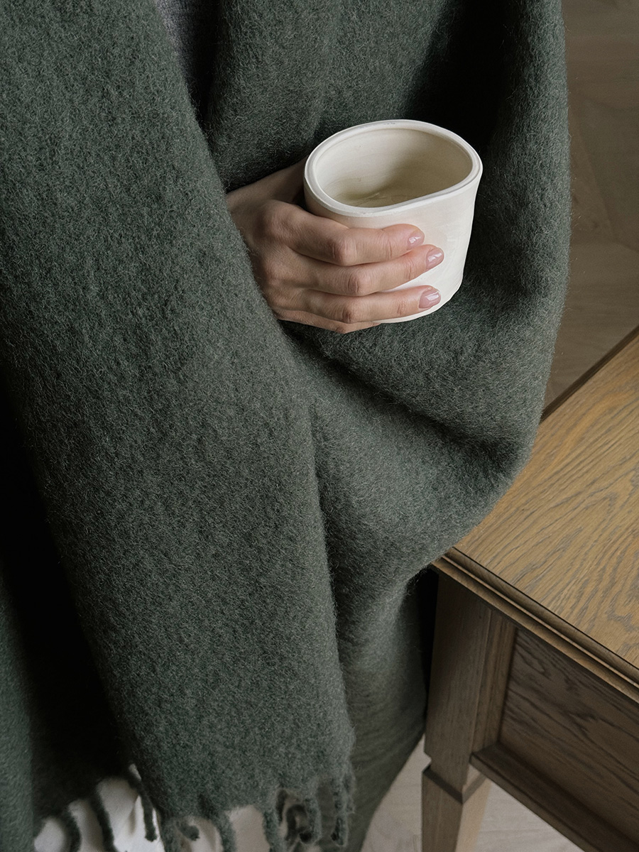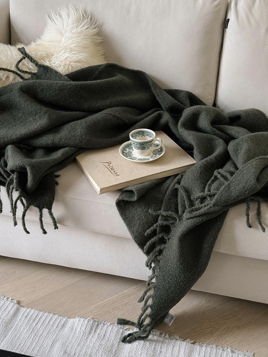 Плед мохеровый хвойно-зеленого цвета из коллекции Essential, 130х180 см