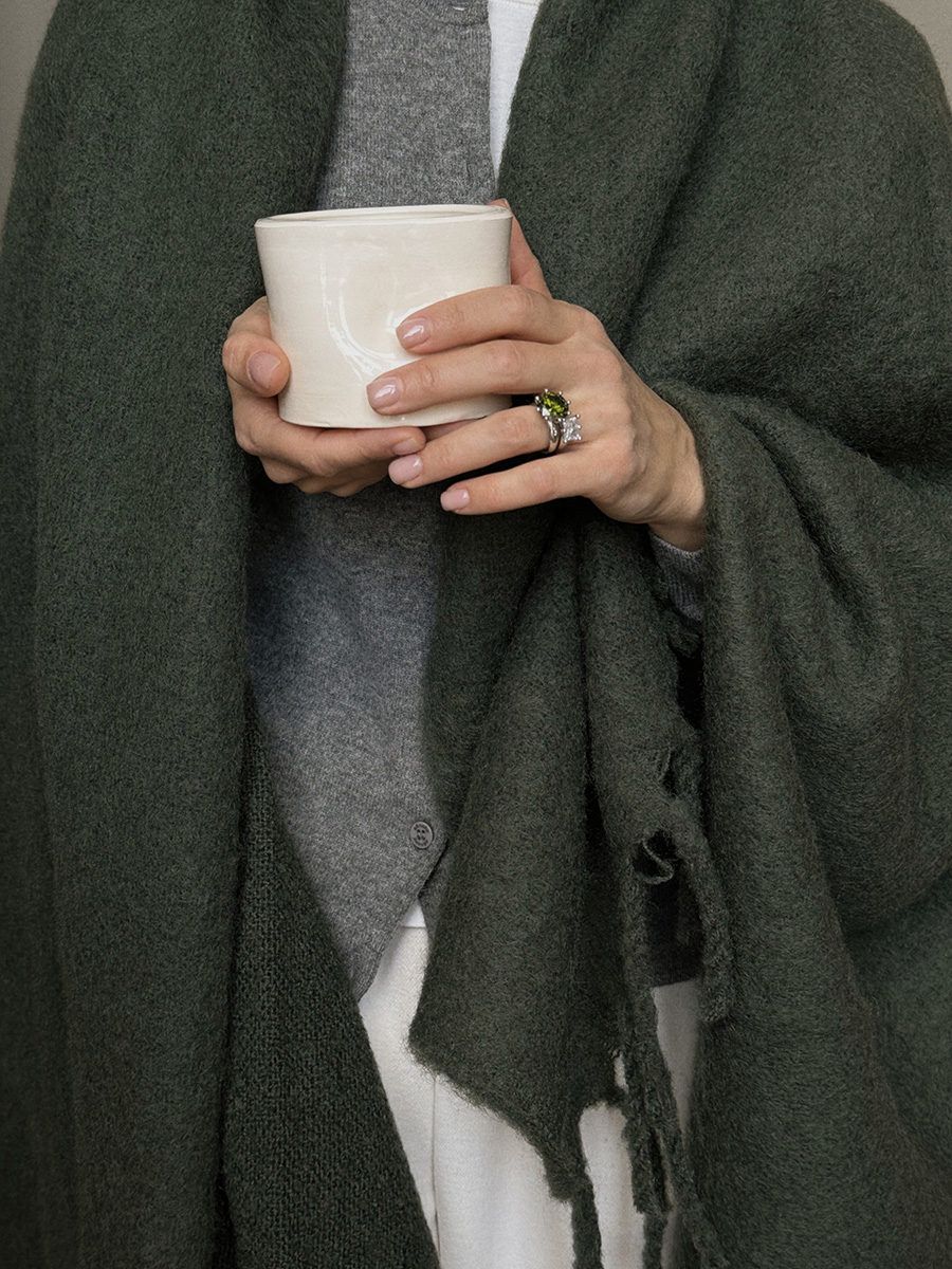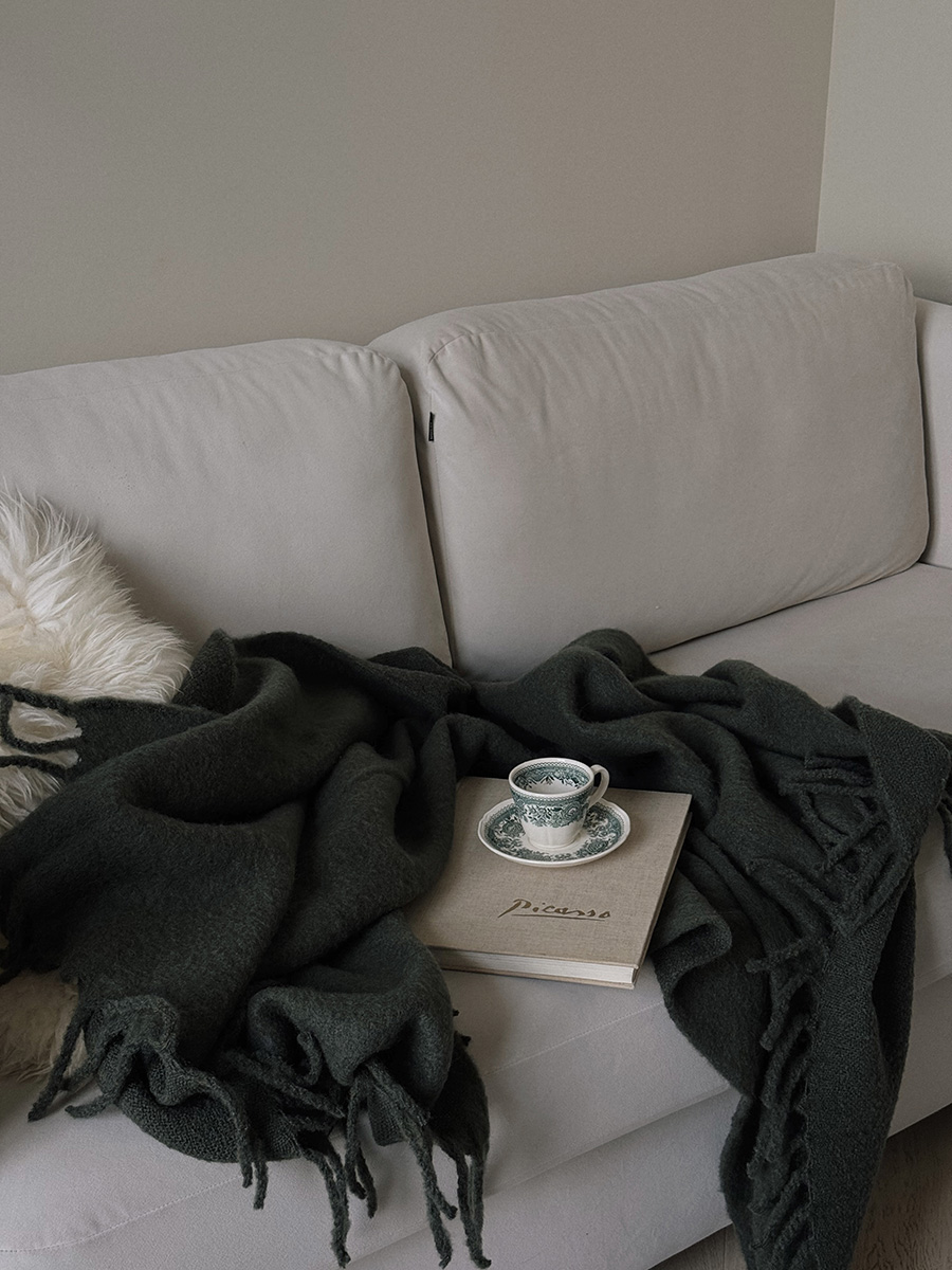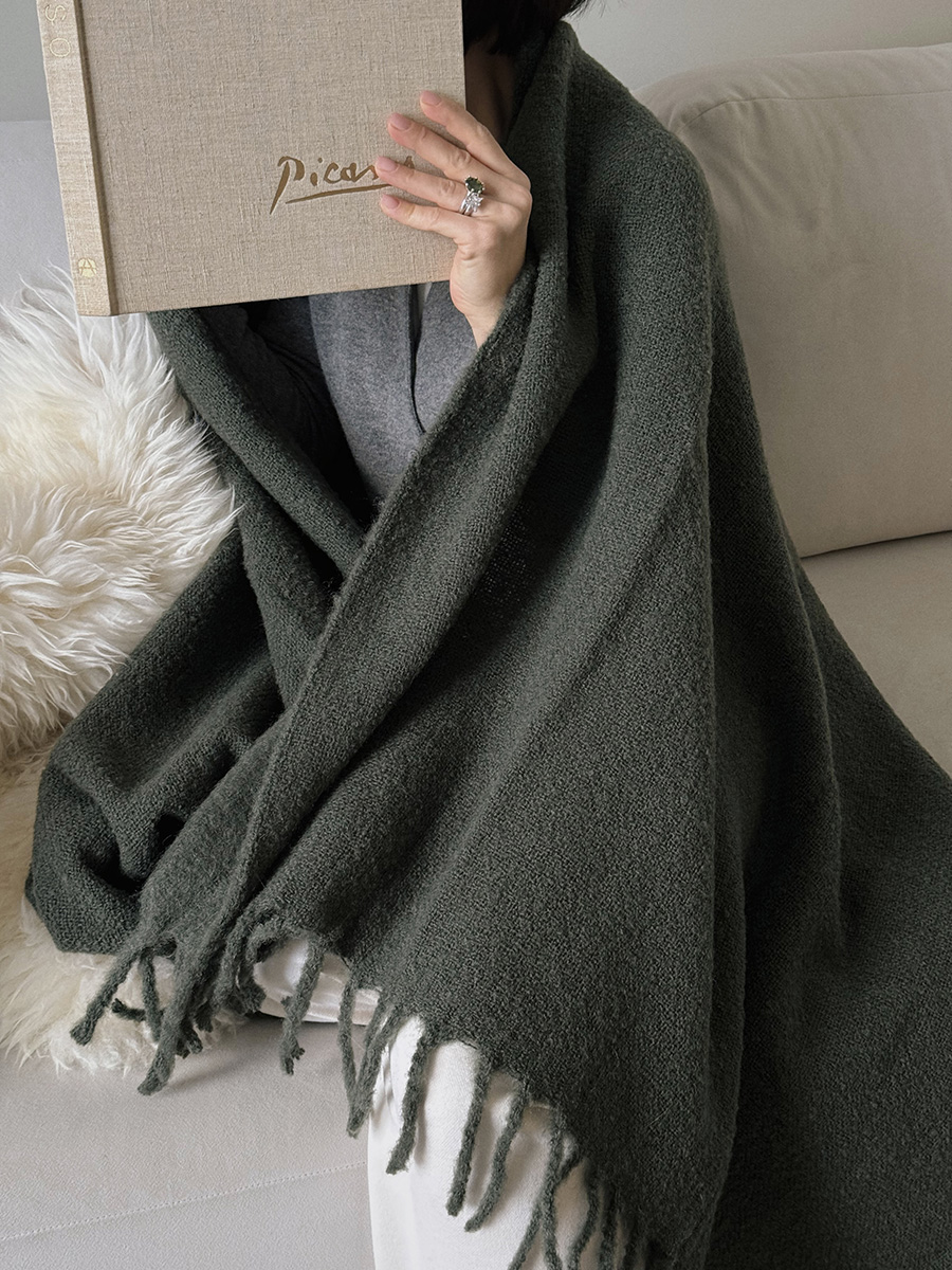 Плед мохеровый хвойно-зеленого цвета из коллекции Essential, 130х180 см