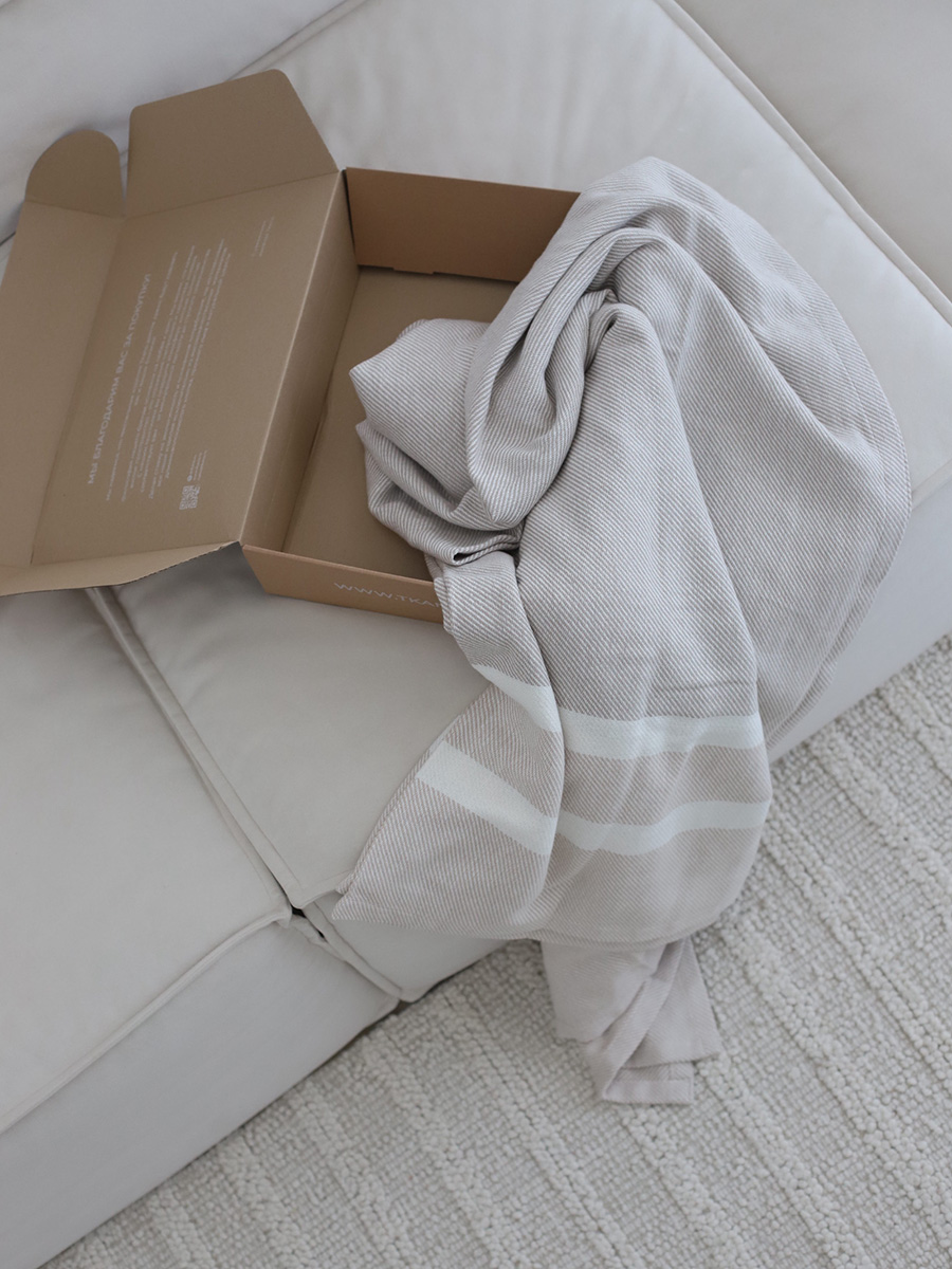 Покрывало из хлопка Warm traditions бежево-серого цвета из коллекции Essential, 230х250 см