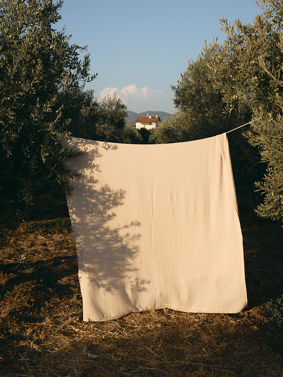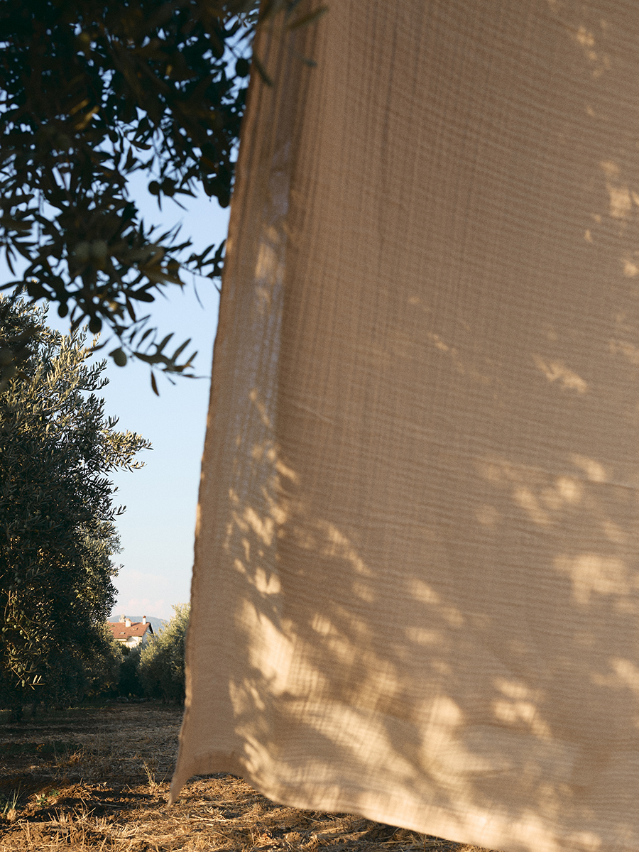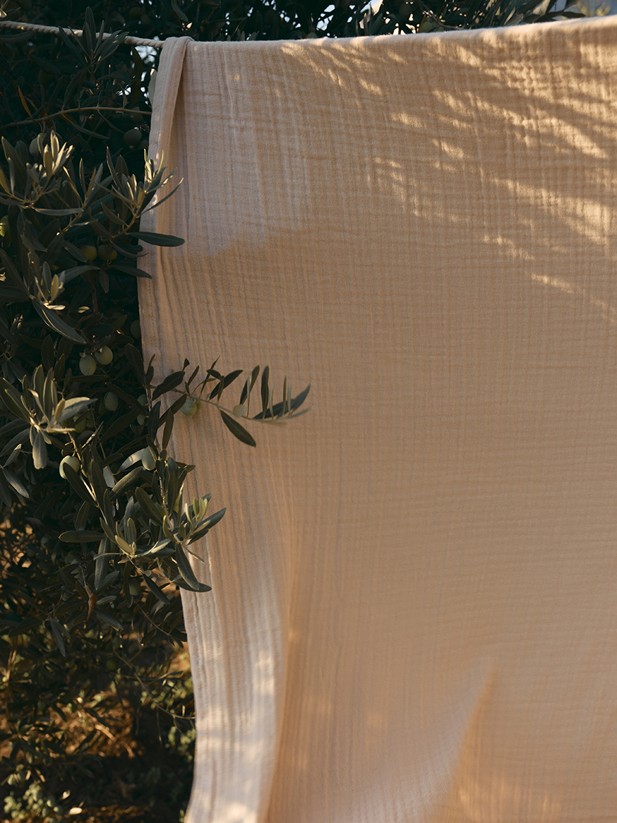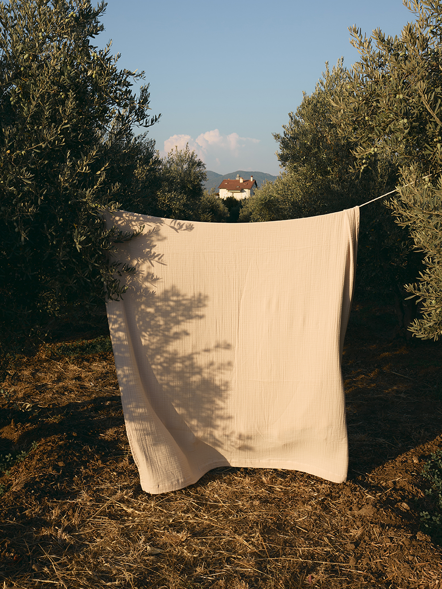 Покрывало двухстороннее из многослойного муслина цвета охры из коллекции Essential, 180х250 см