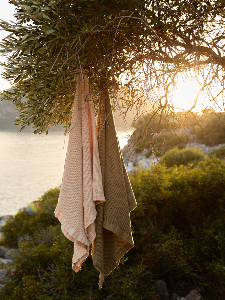 Полотенце банное из умягченной вафли цвета хаки из коллекции Essential, 70x140 см