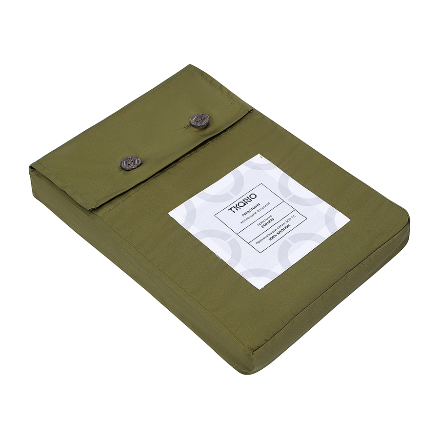 - Простыня из премиального сатина оливкового цвета из коллекции Essential, 240х270 см